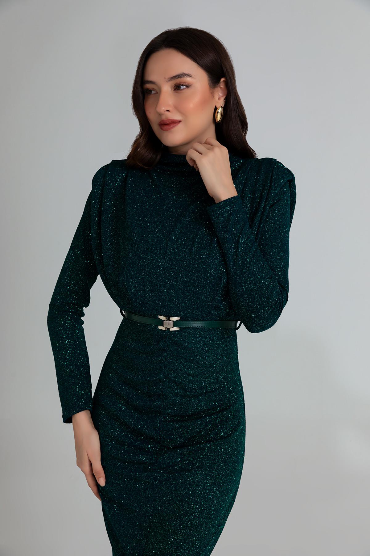 Simli Uzun Gece Elbisesi - ZÜMRÜT YEŞİL (BEW531ELB0020201)