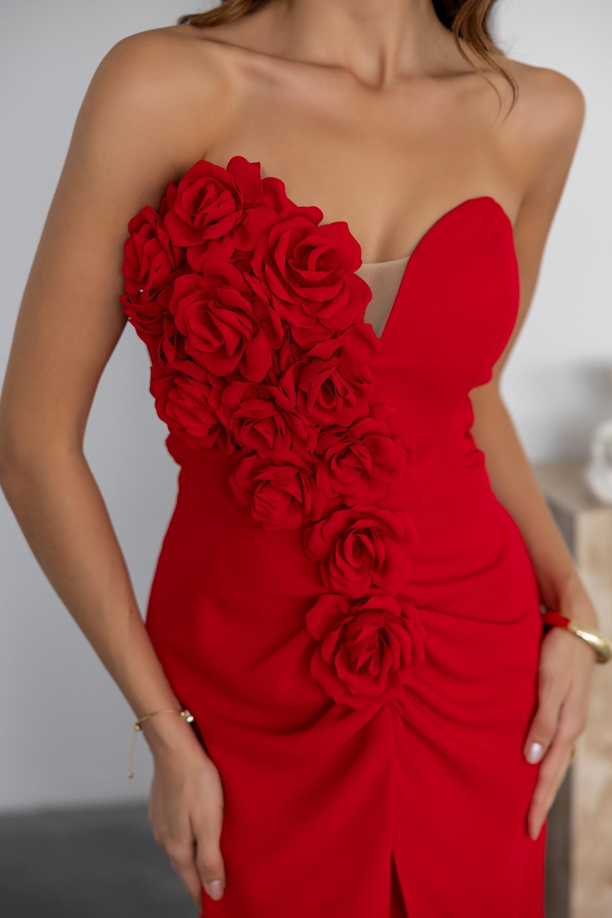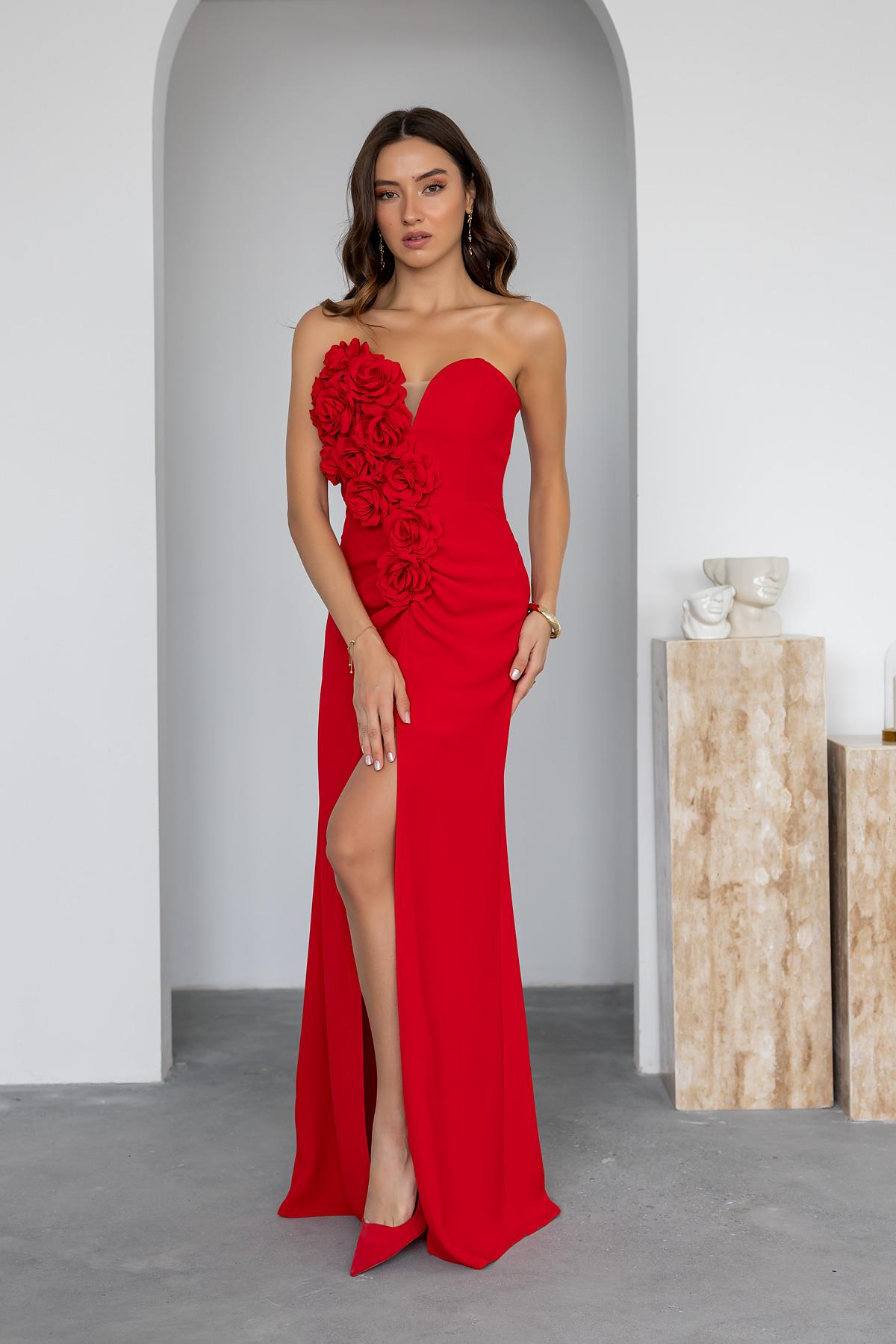 Straplez Göğüs Tasarım Abiye - KIRMIZI (BDW626ABY0001124)