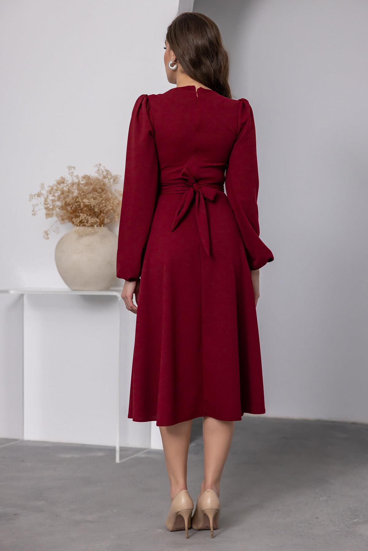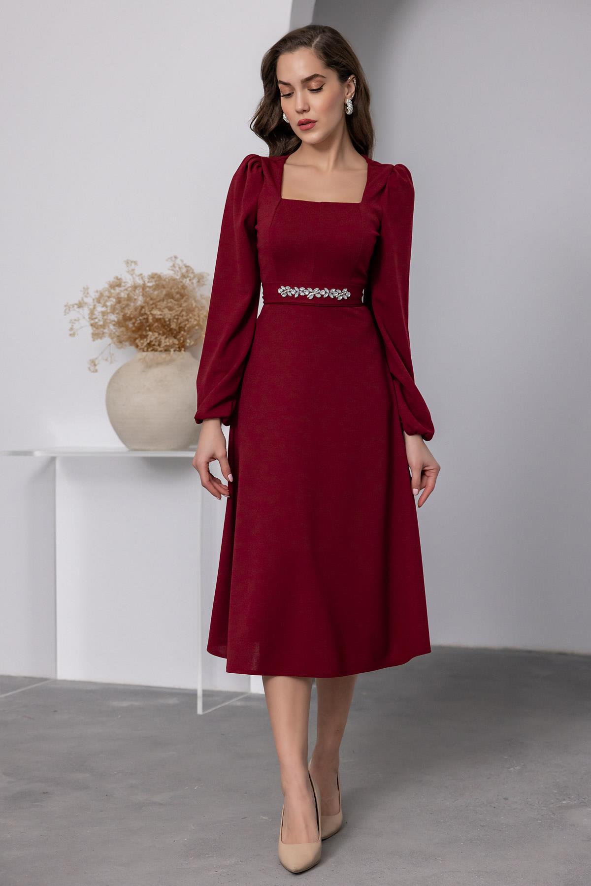 Taş Kuşaklı Kare Yaka Elbise - BORDO (BEW531ELB0044121)