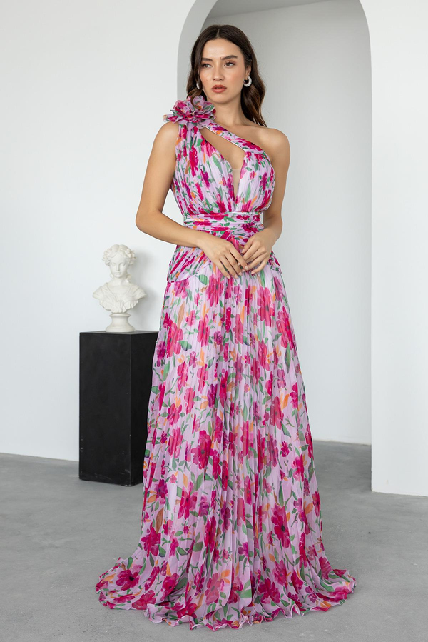Tül Desenli Tasarım Abiye - PEMBE (BDS621ABY0001103)