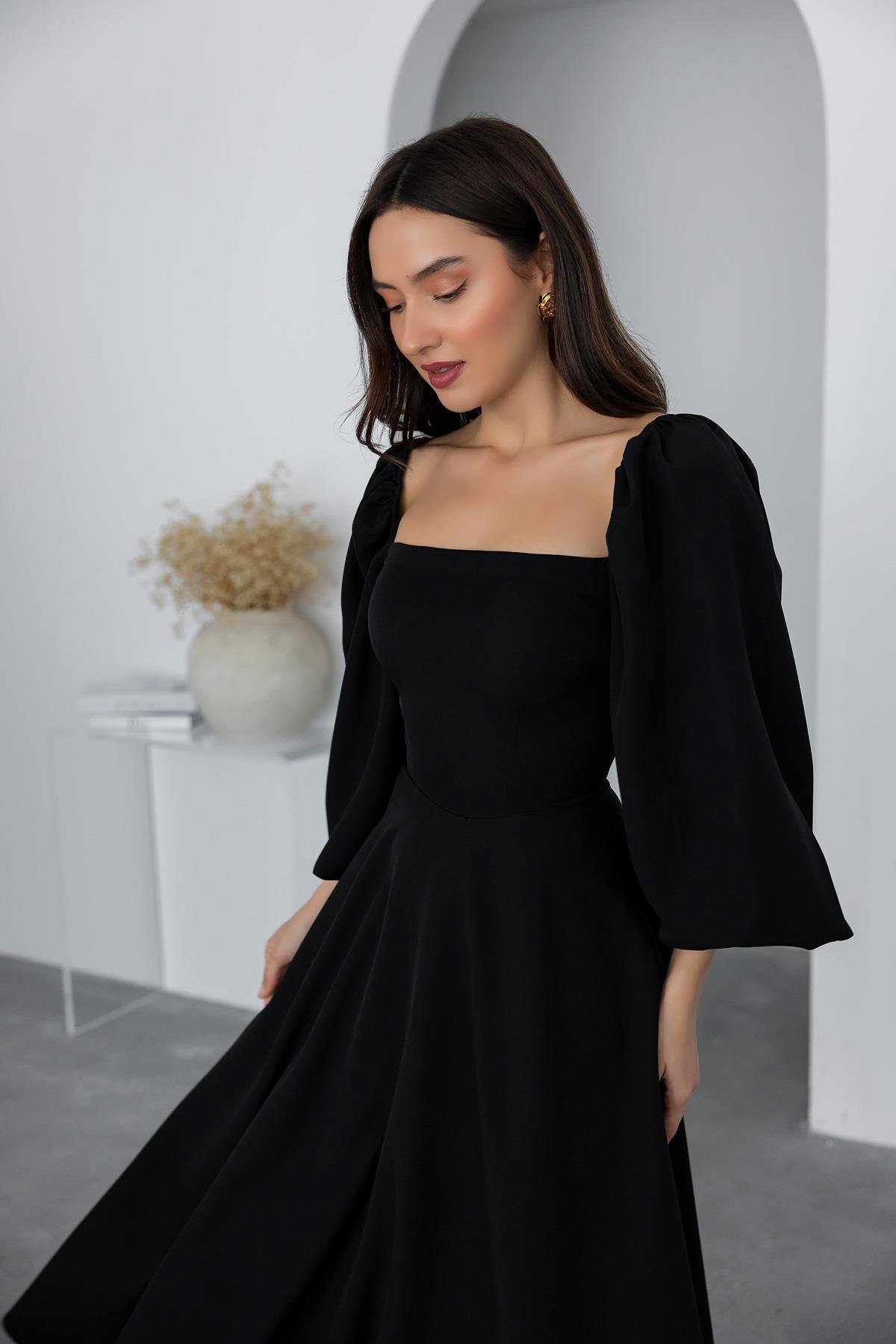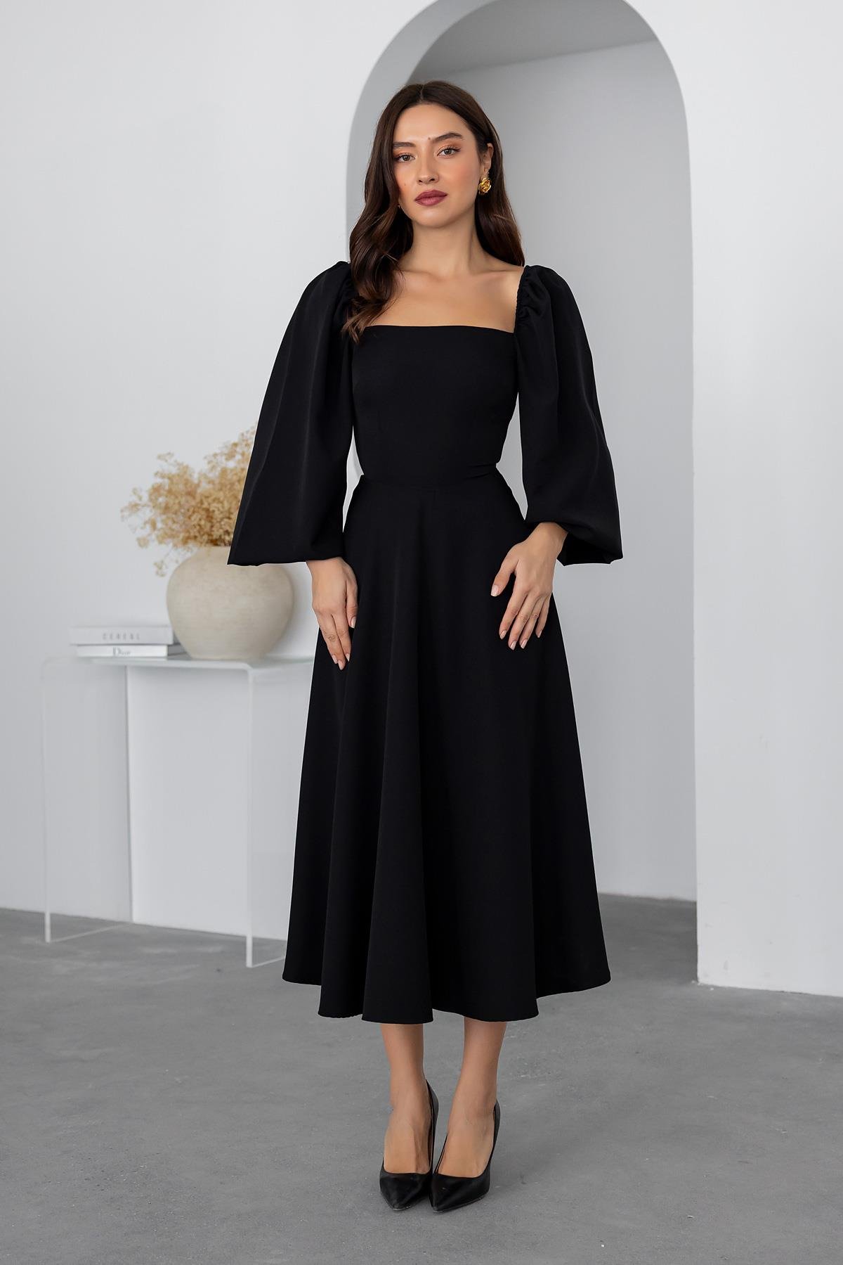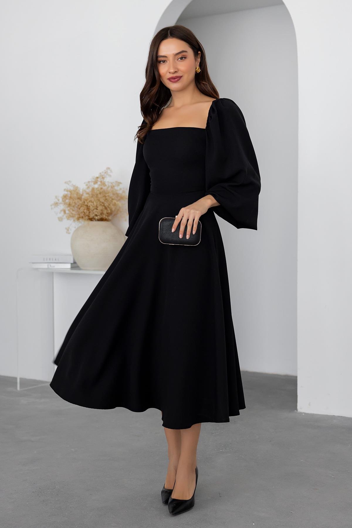 Uzun Kollu Kloş Elbise - SİYAH (BEW093ELB0003100)