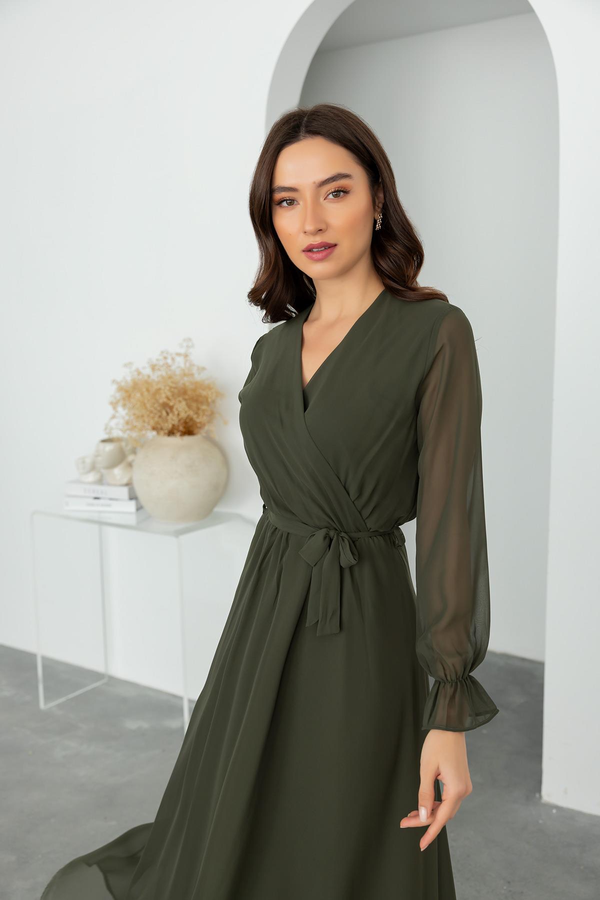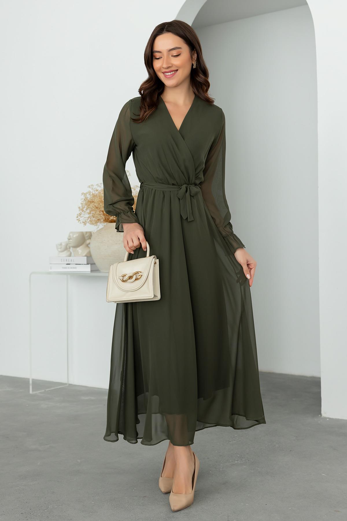 Uzun Şifon Elbise - HAKİ (BEW157ELB0002106)