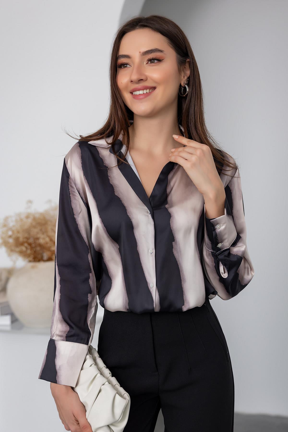 V Yaka Saten Gömlek - SİYAH (BEW390GÖM0003100)