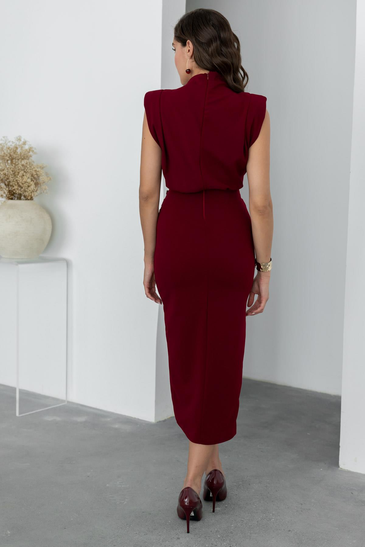 Vatkalı Broş Detay Elbise - BORDO (BDS037ELB0039121)