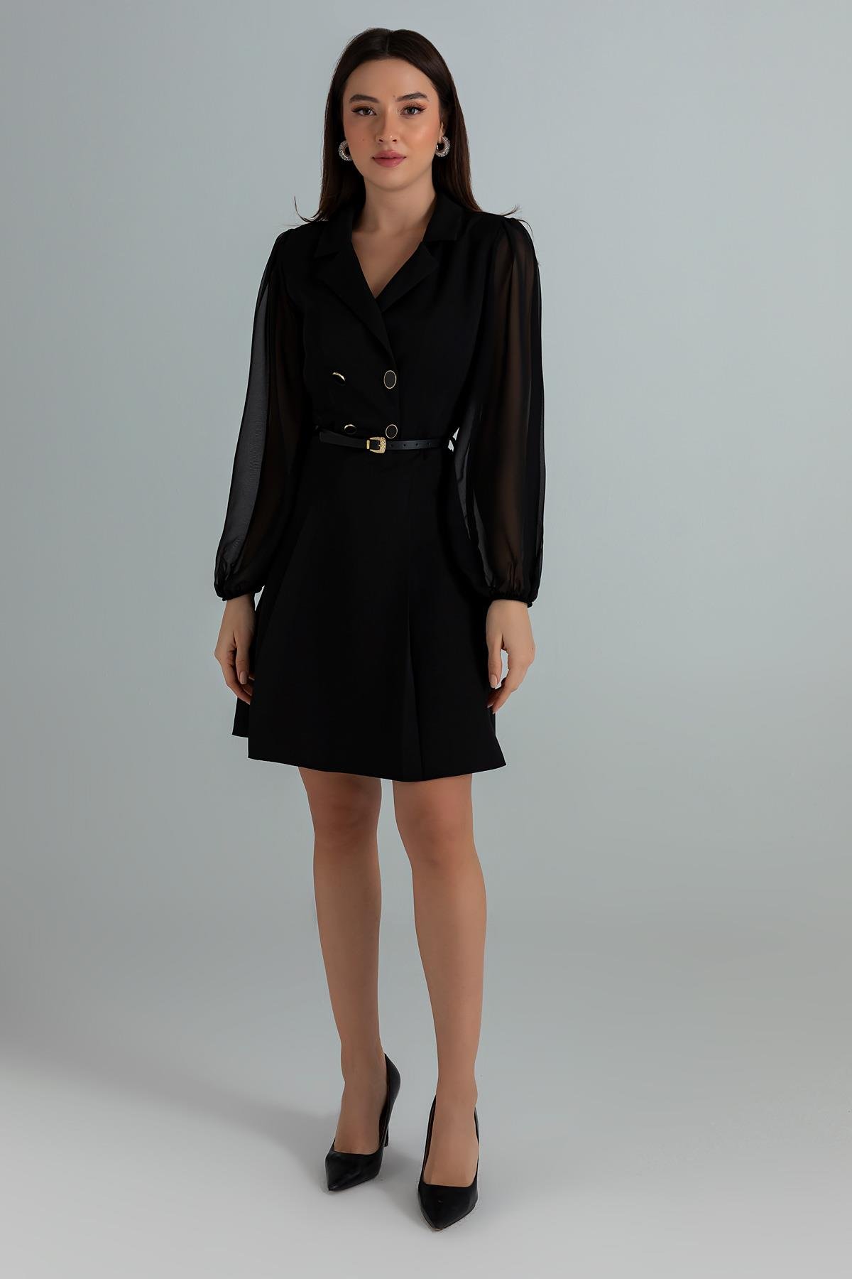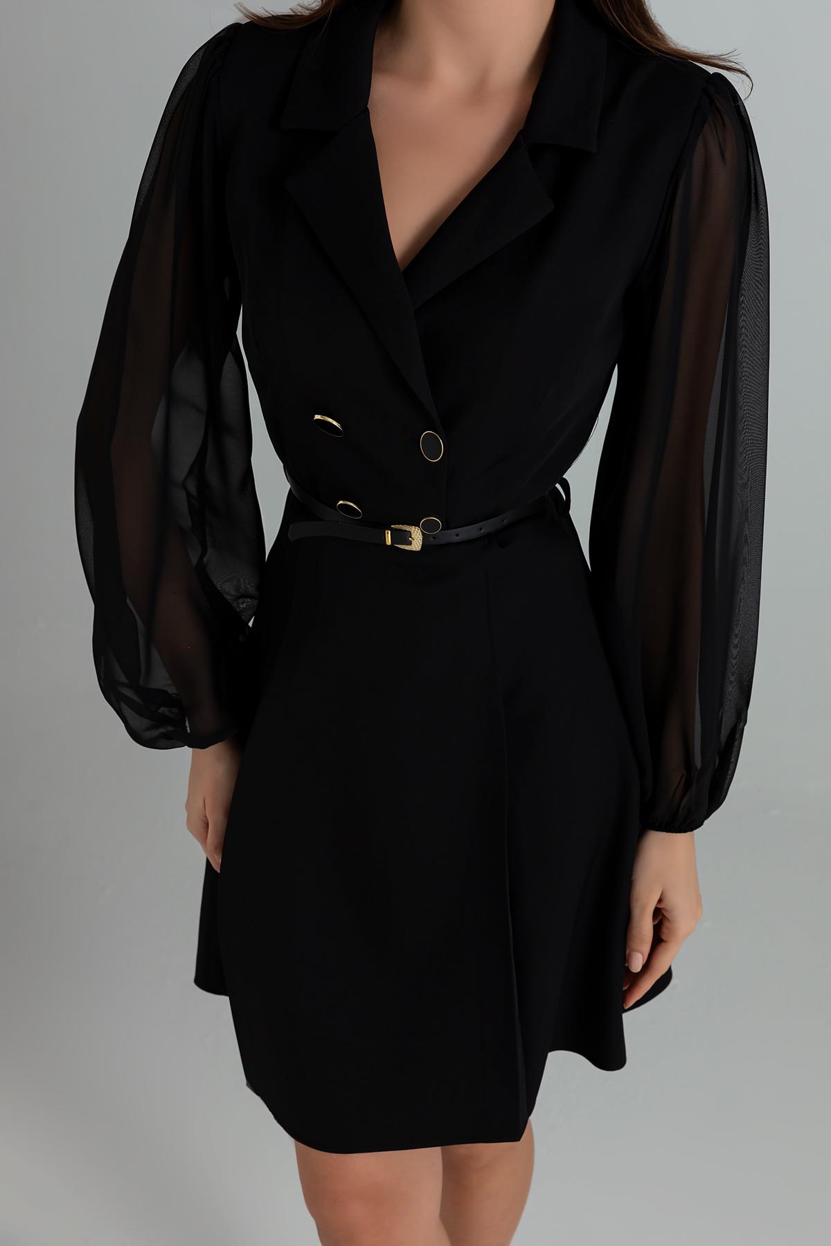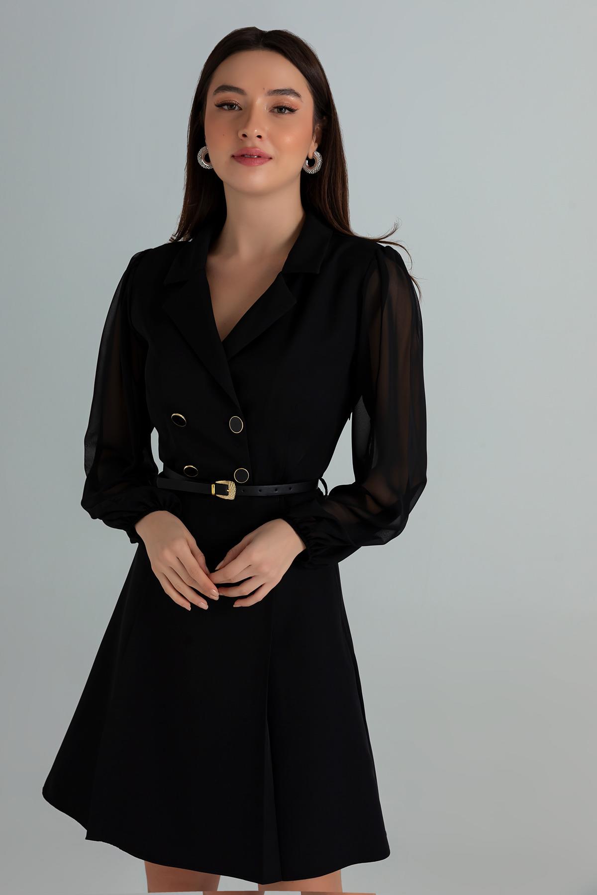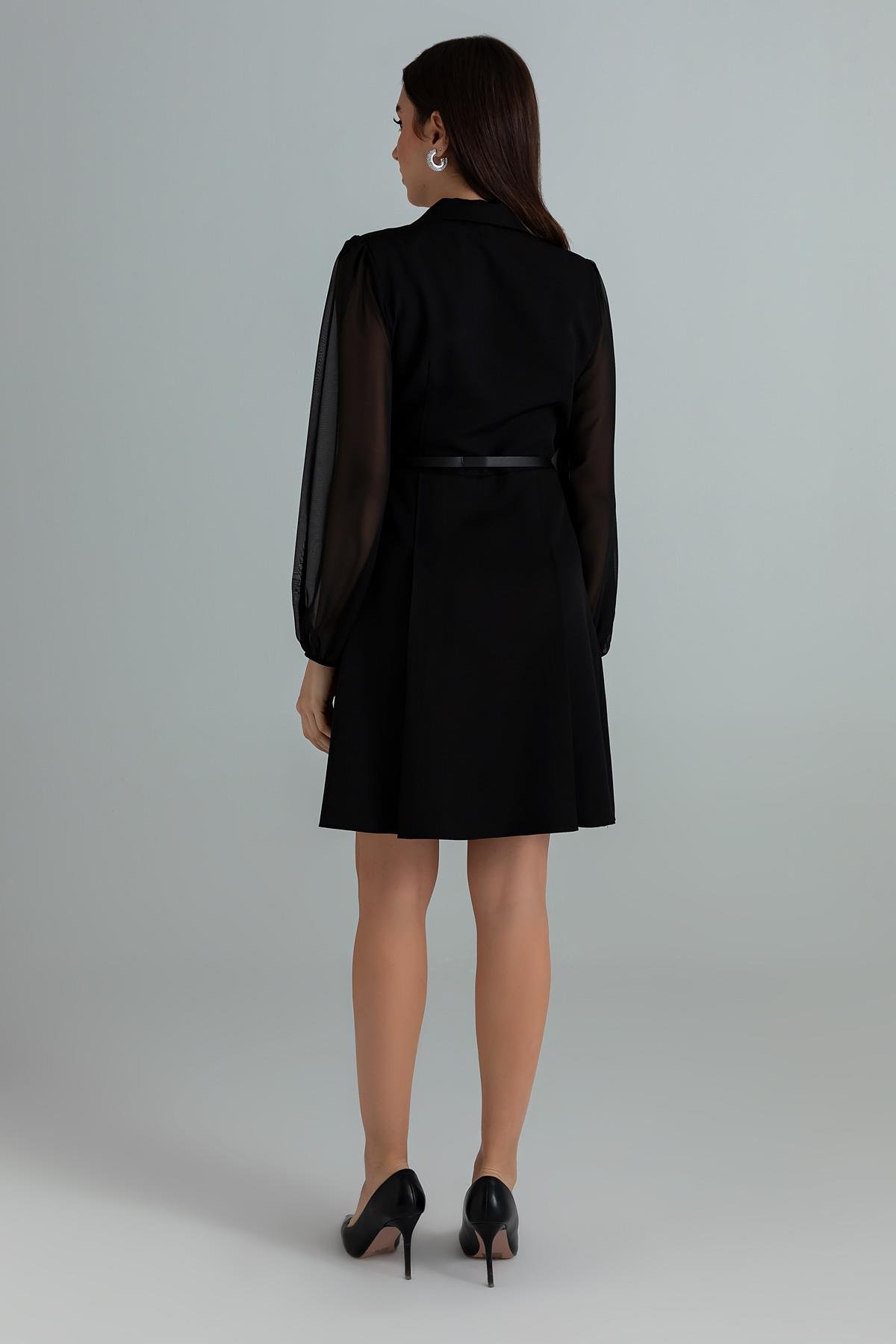Yakalı Kemerli Elbise - SİYAH (BEW528ELB0005100)