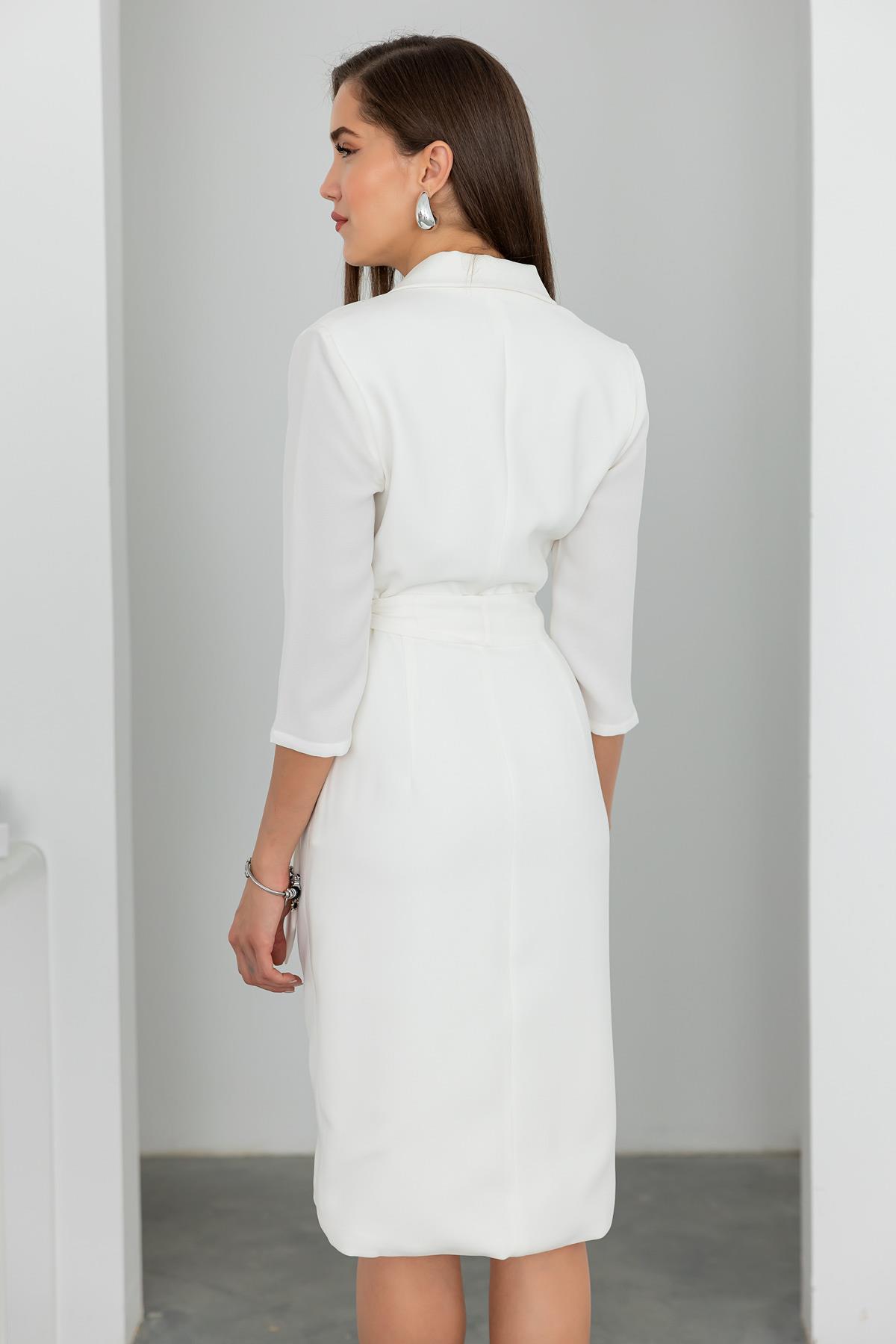 Yarım Kol Kuşaklı Elbise - BEYAZ (BDS586ELB0001101)