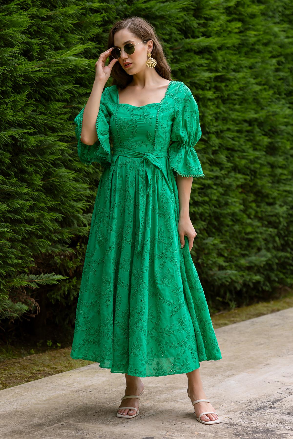Fisto Uzun Elbise - YEŞİL (BDS383ELB0022117)