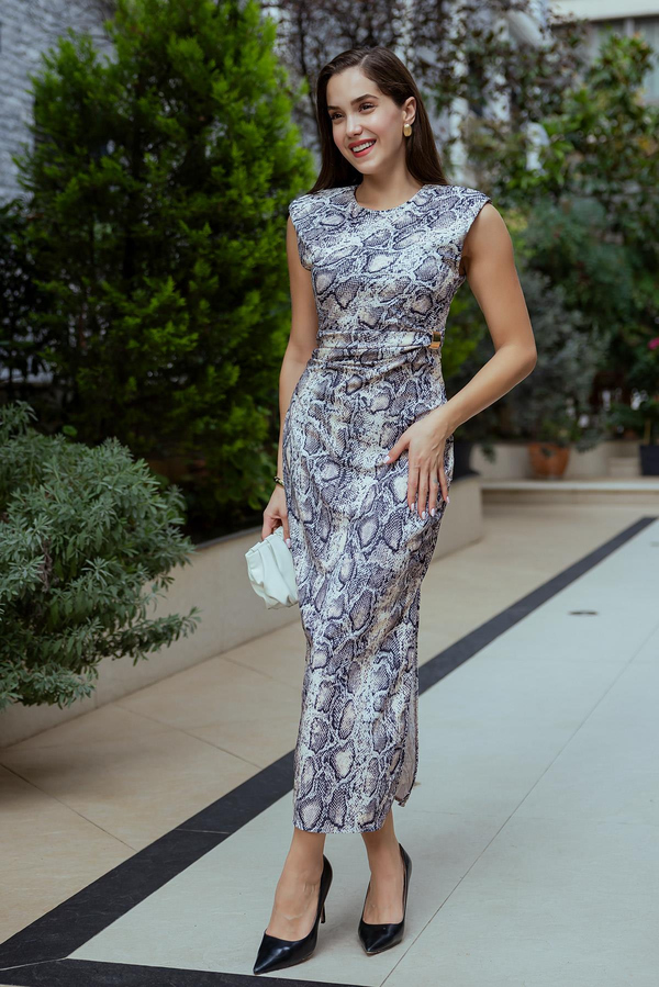 Desenli Tokalı Elbise - BEJ (BEW531ELB0018146)