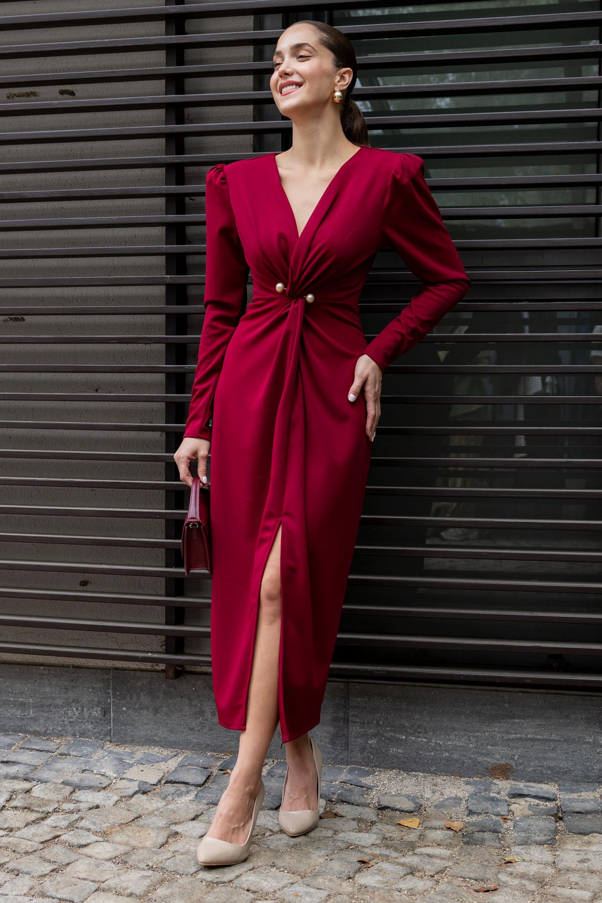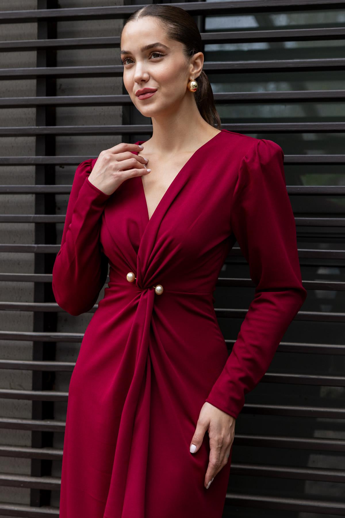 Kruvaze Yaka Vatkalı Elbise - BORDO (BDW531ELB0062121)