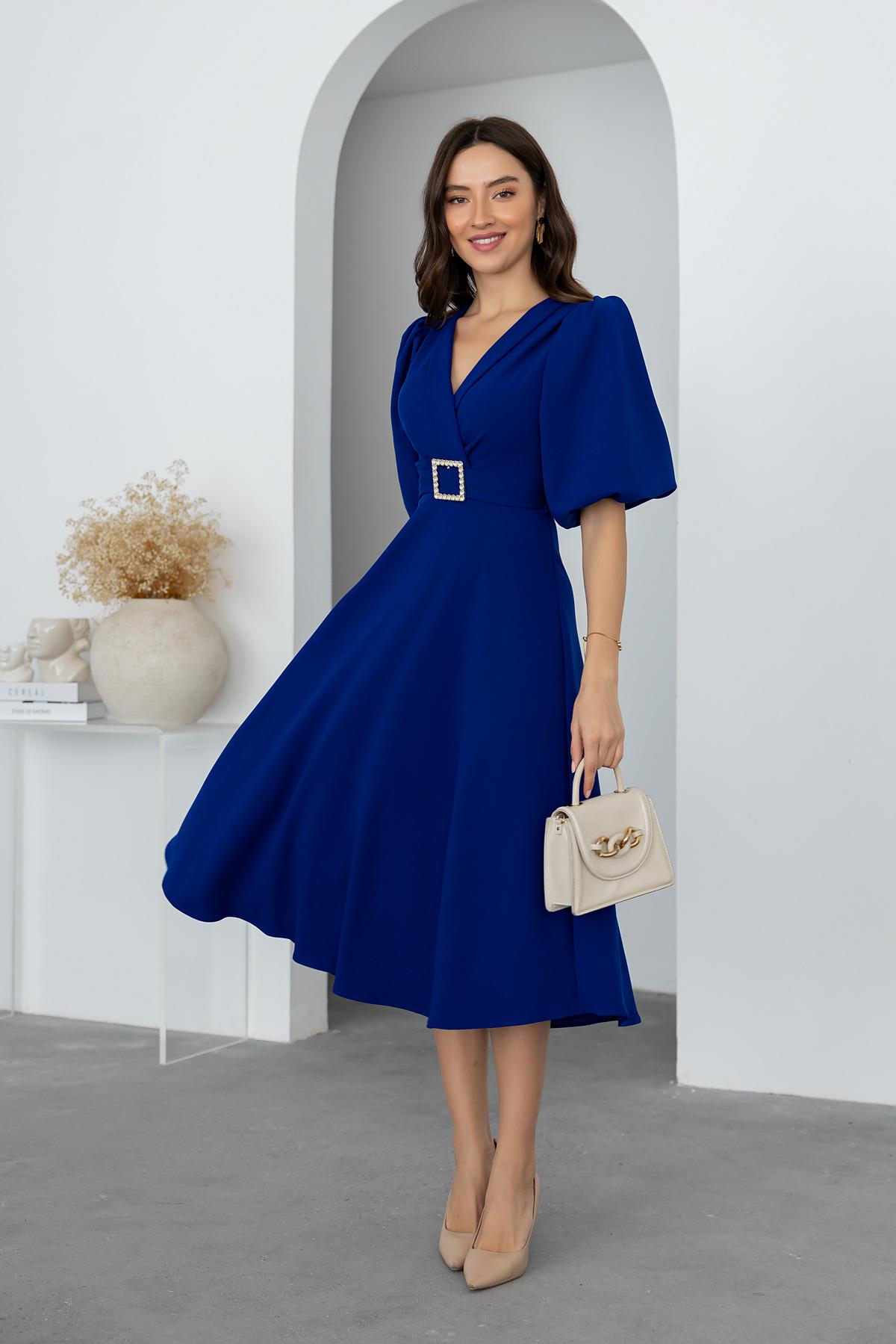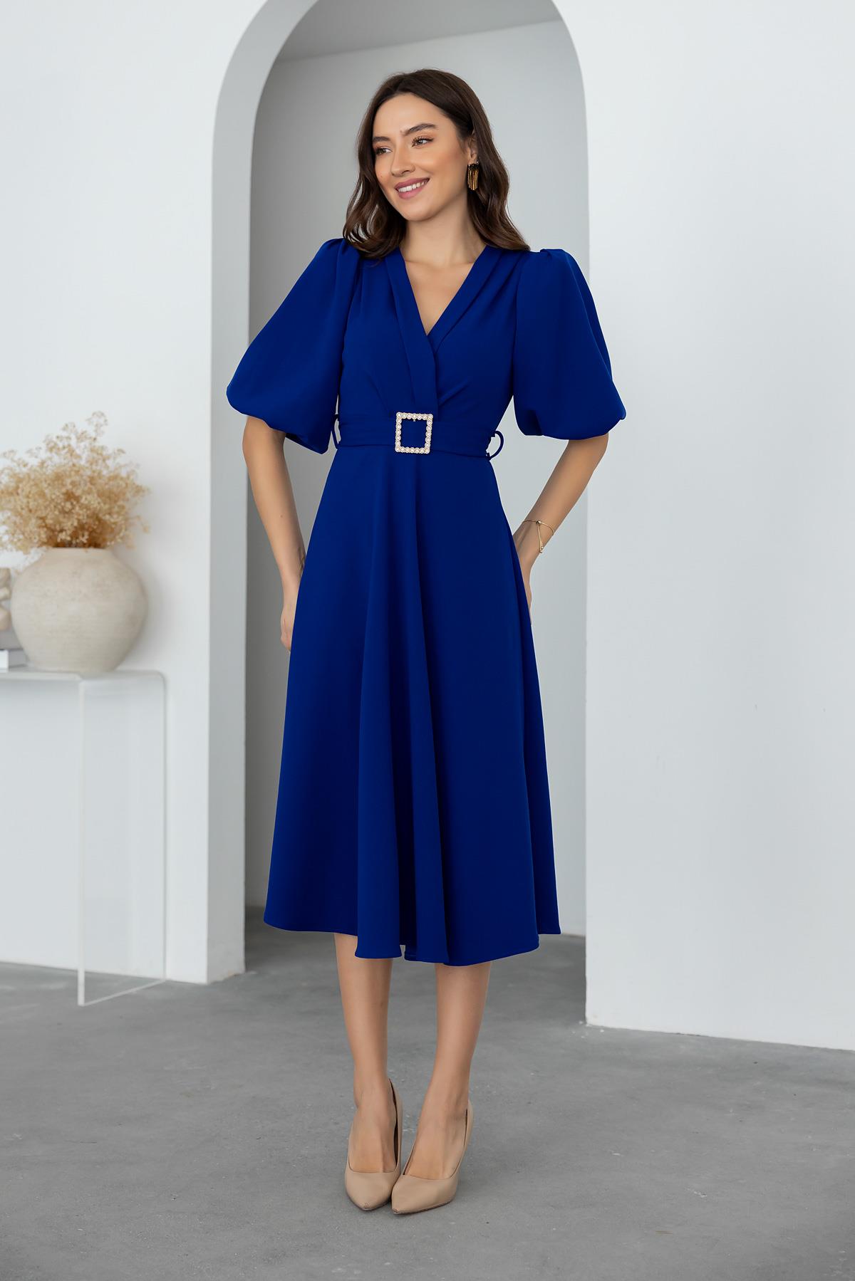 Kruvaze Yakalı Midi Elbise - SAKS (BEW531ELB0004129)