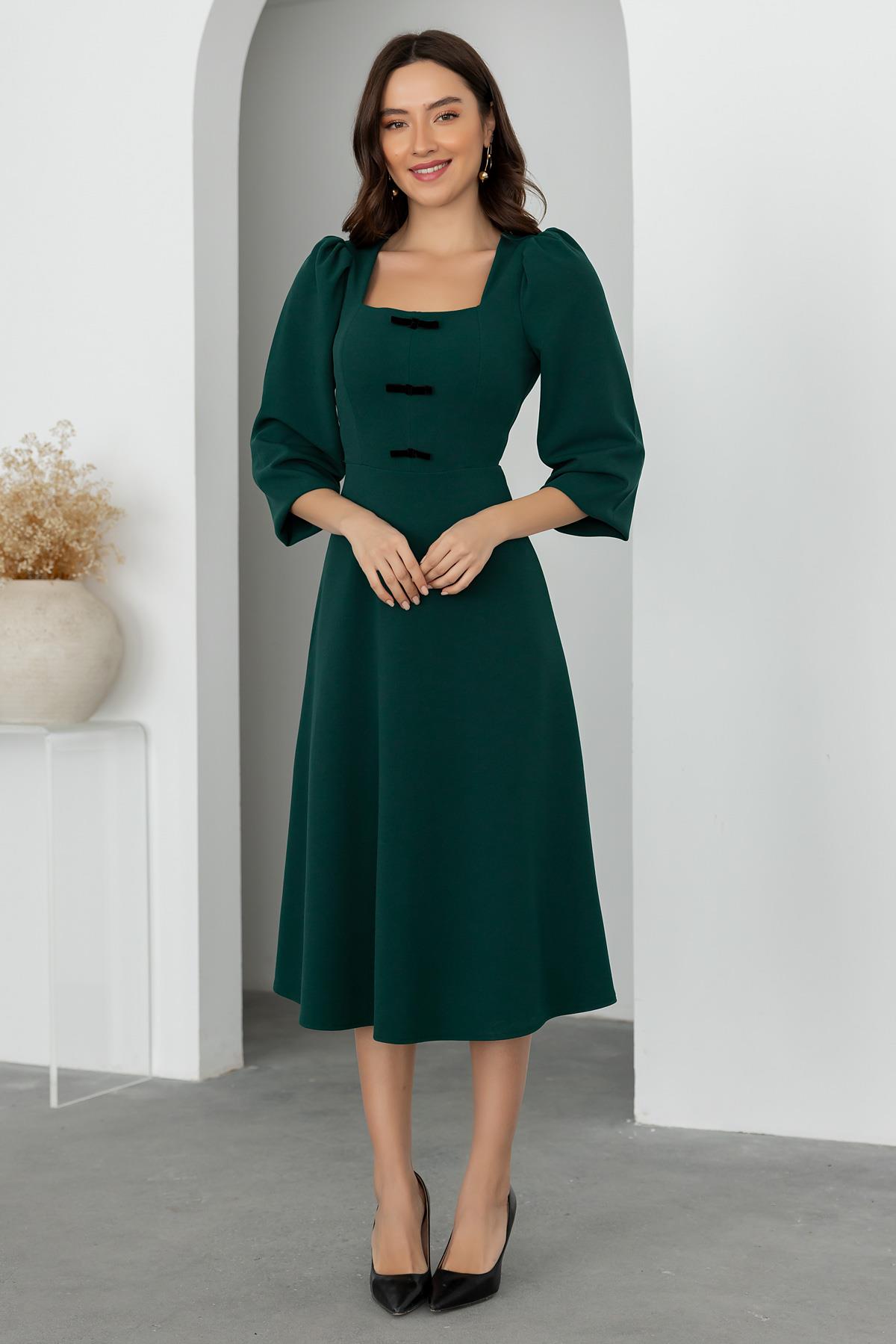 Kurdele Detay Midi Elbise - ZÜMRÜT YEŞİL (BEW531ELB0029201)