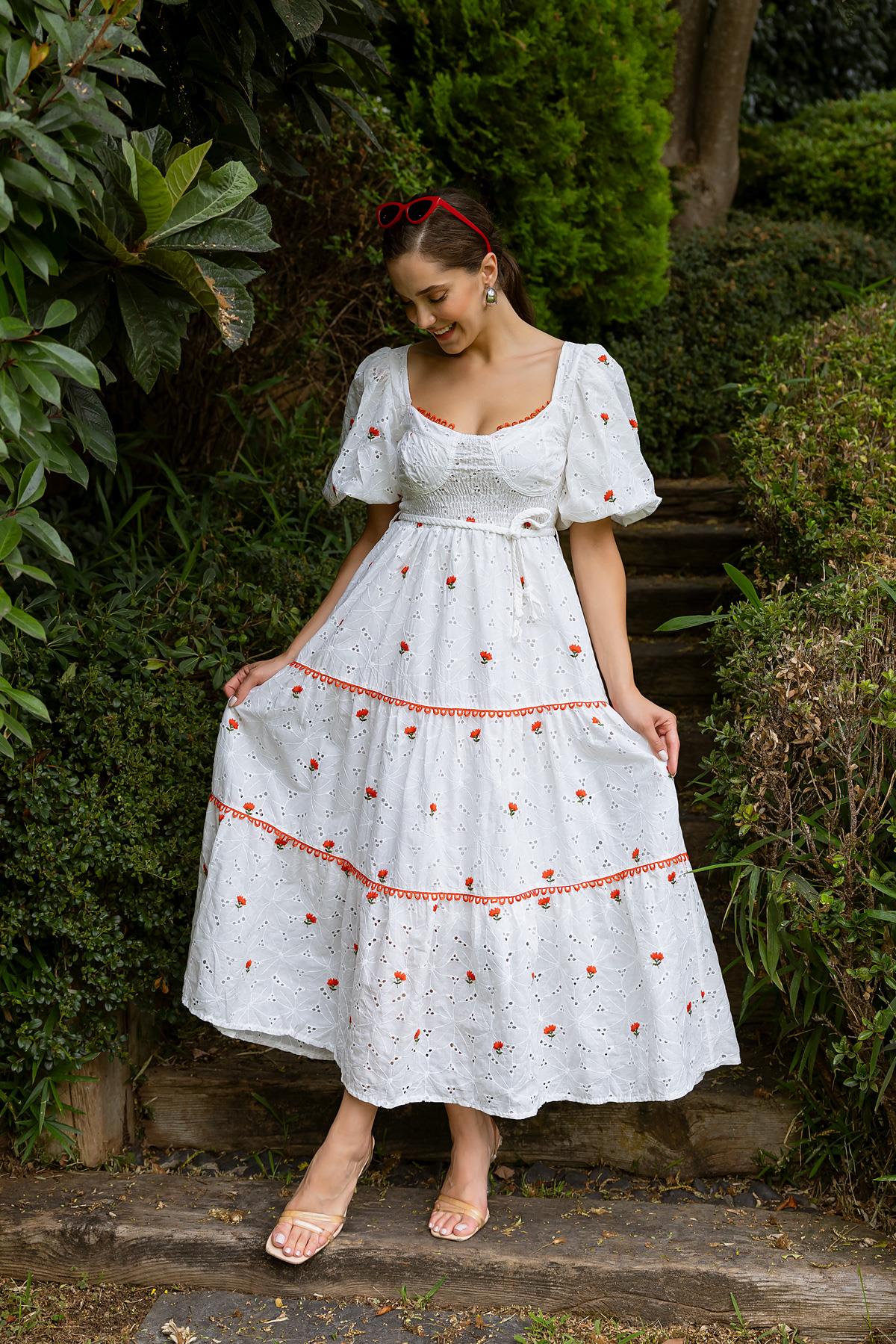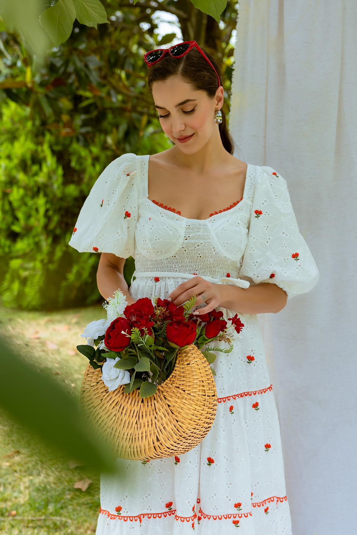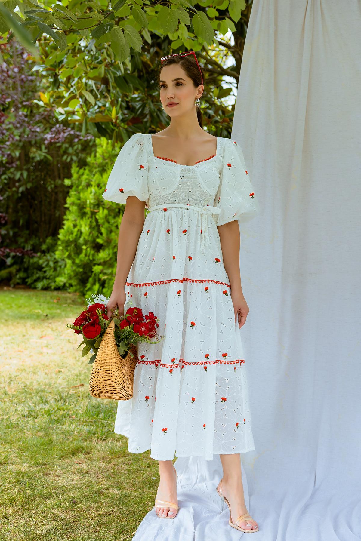 Nakışlı Fisto Elbise - NAR ÇİÇEĞİ (BDS383ELB0024116)