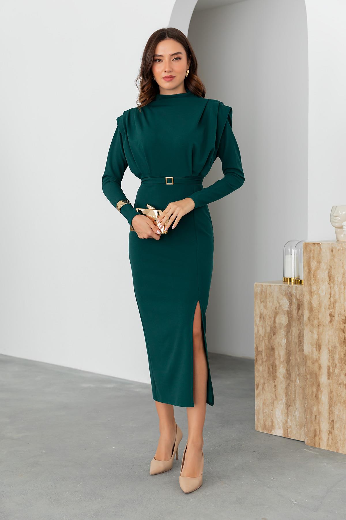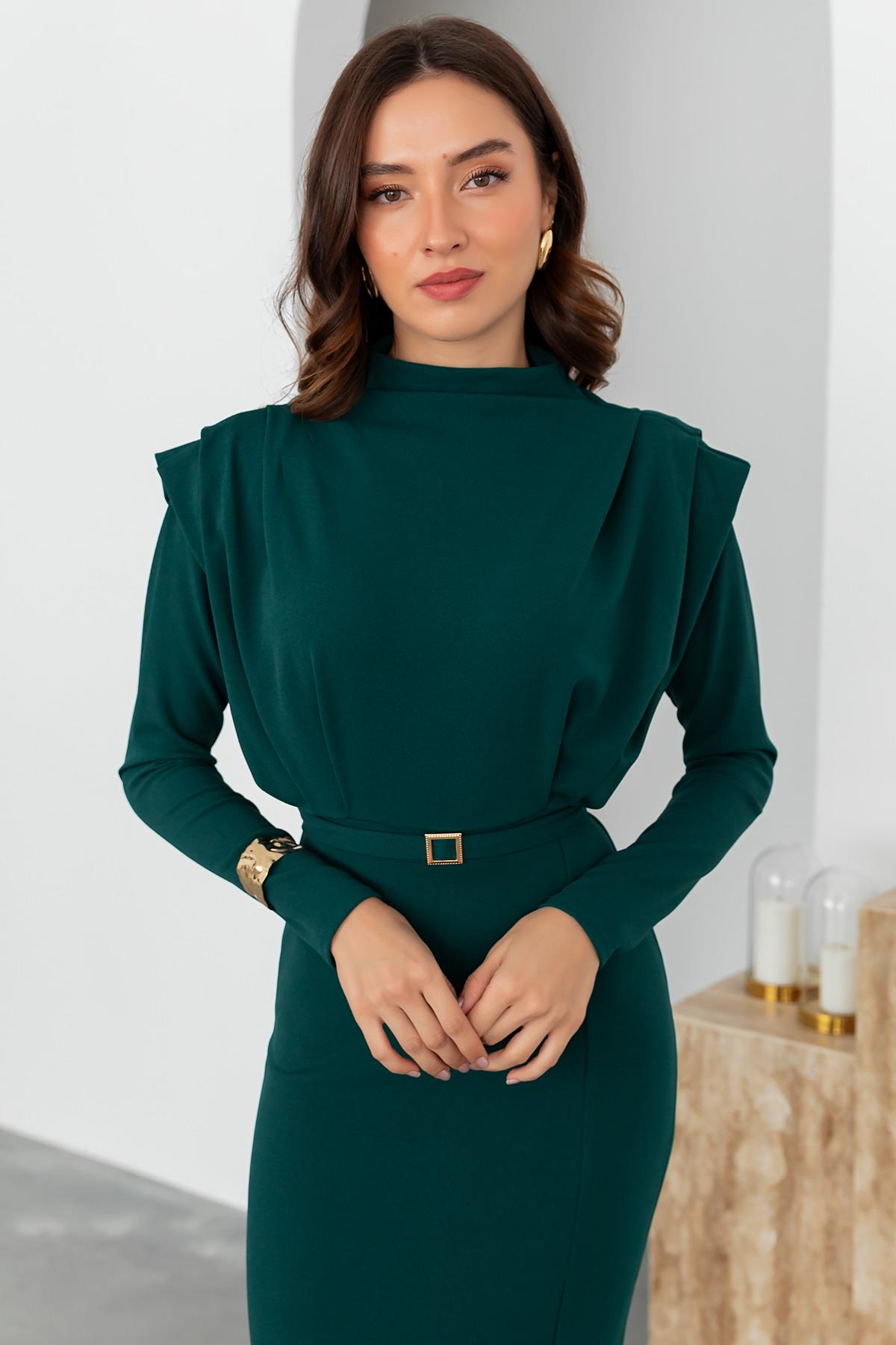 Omuz Vatka Kuşaklı Elbise - ZÜMRÜT YEŞİL (BDW531ELB0053201)