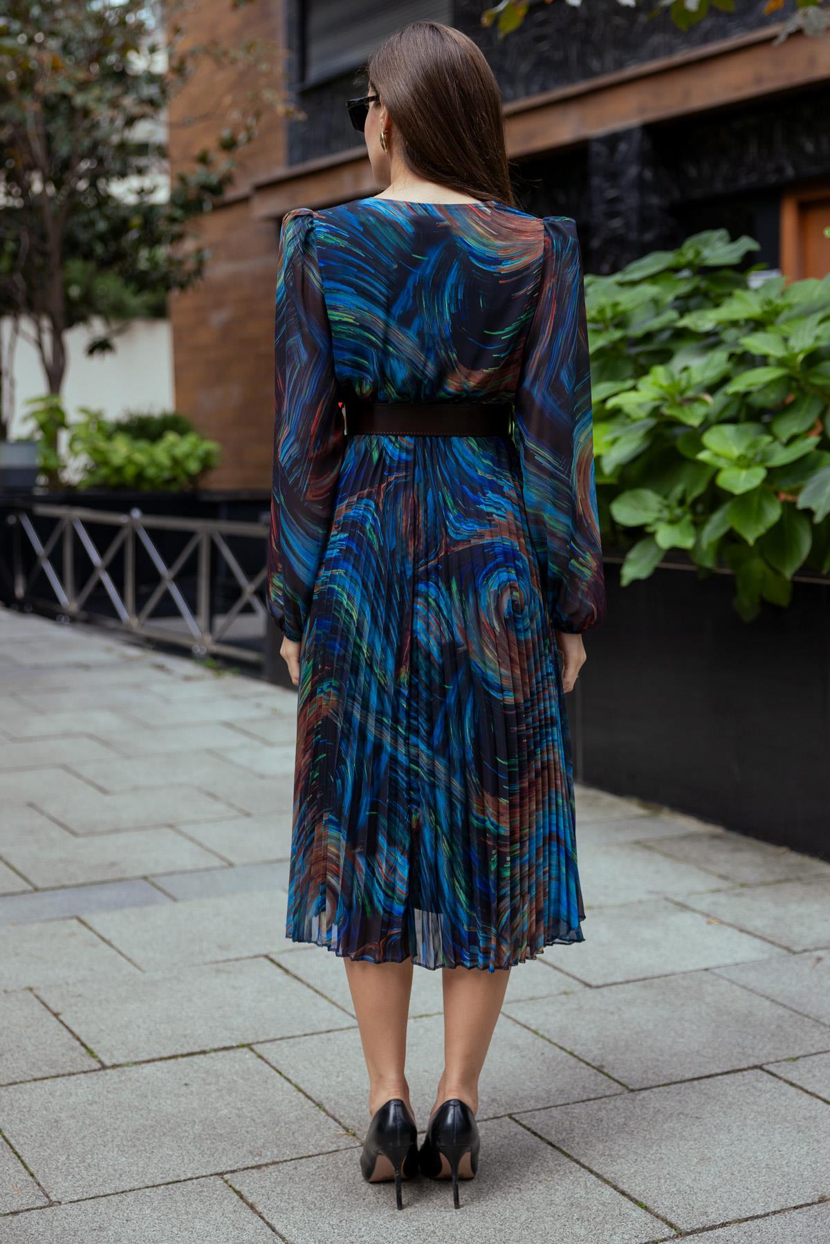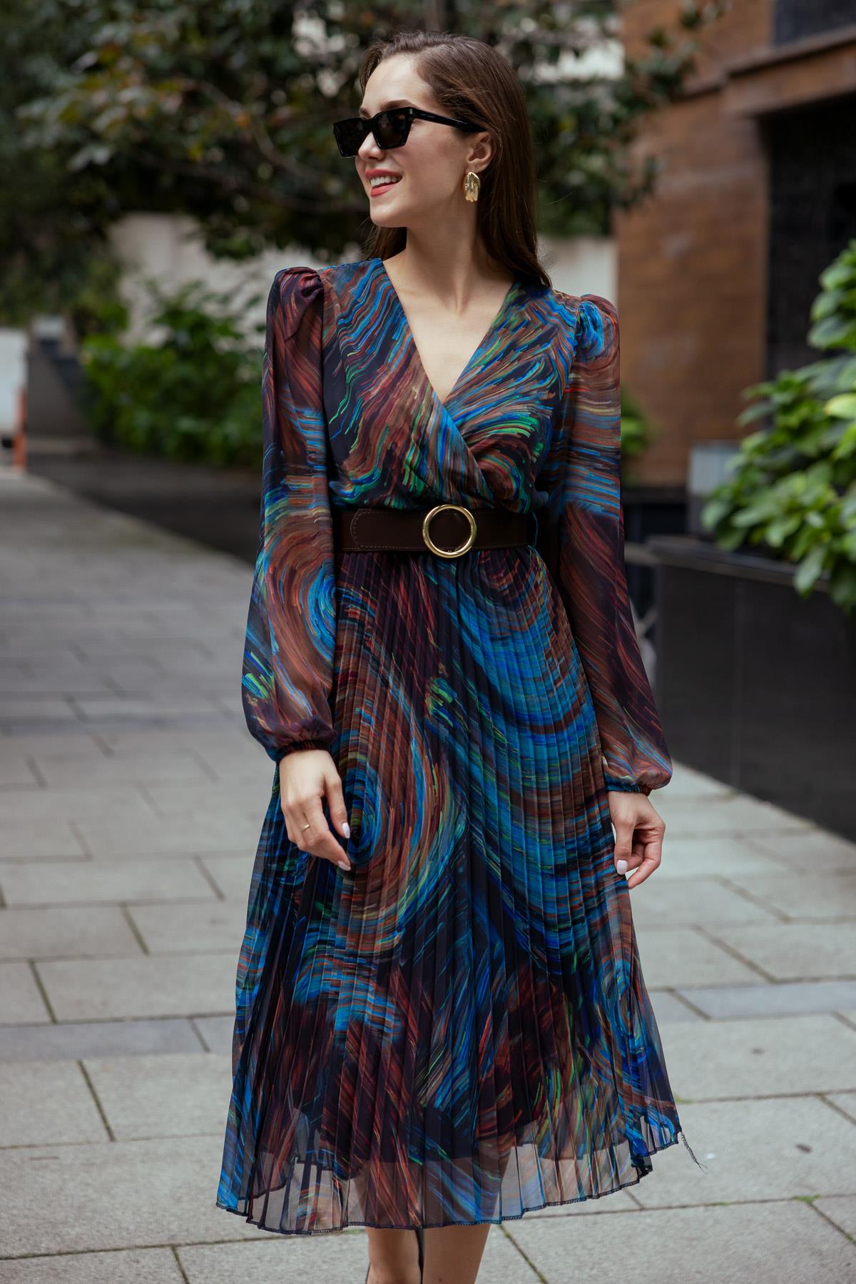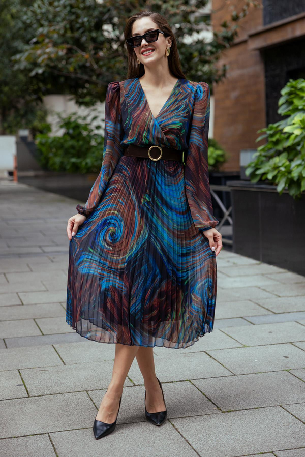 Piliseli Midi Elbise - KAHVERENGİ (BEW531ELB0014112)