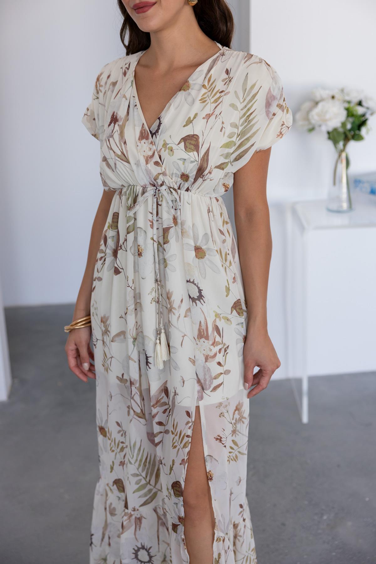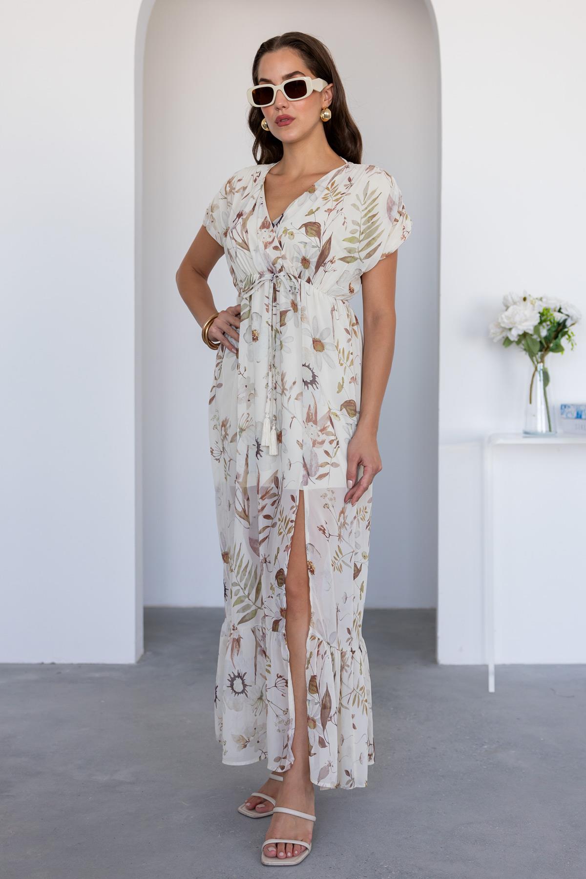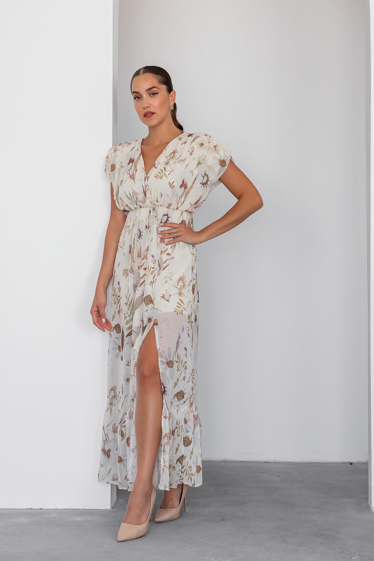 Şifon Kruvaze Yaka Elbise - BEJ (BDS037ELB0034146)