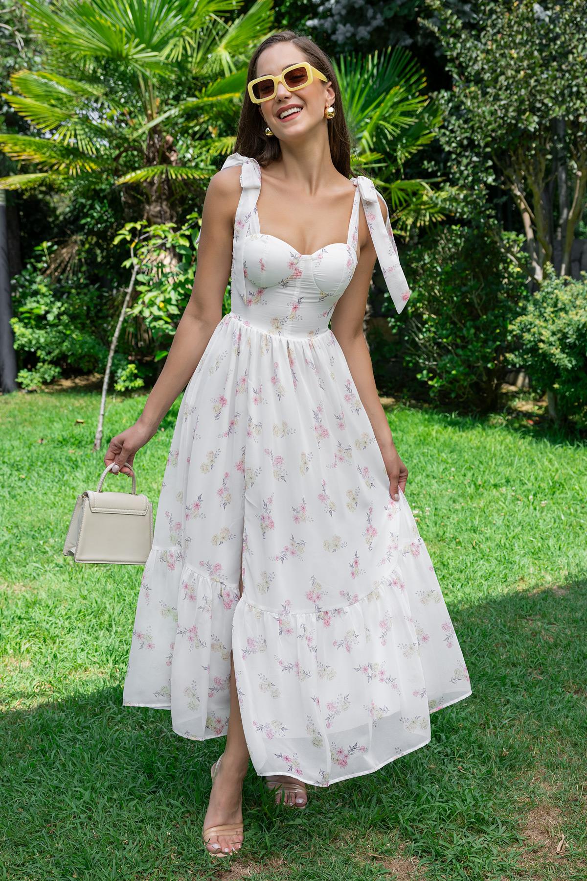 Şifon Yırtmaçlı Elbise - BEYAZ (BDS093ELB0010101)