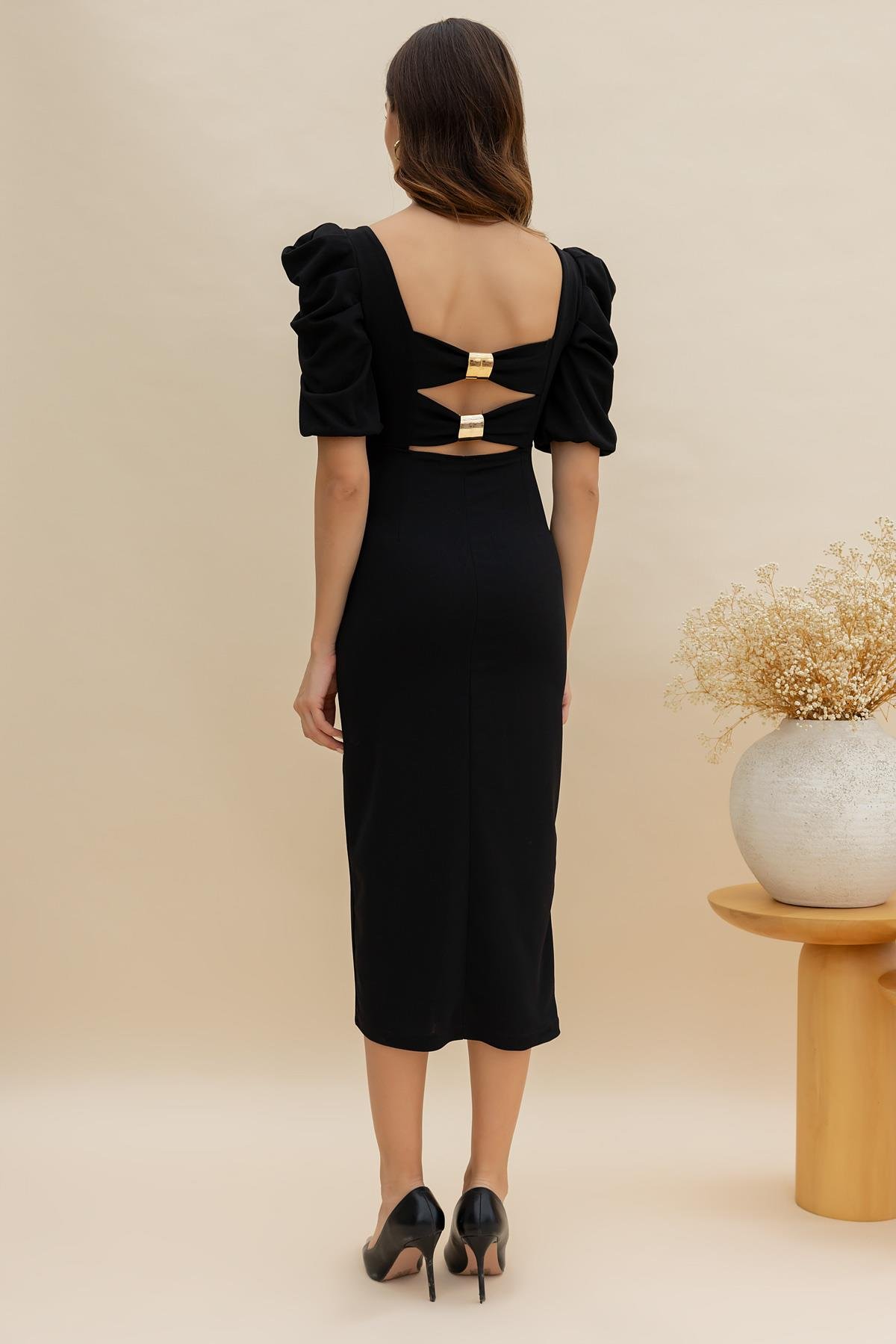 Sırt Detay Midi Elbise - SİYAH (BDW037ELB0032100)