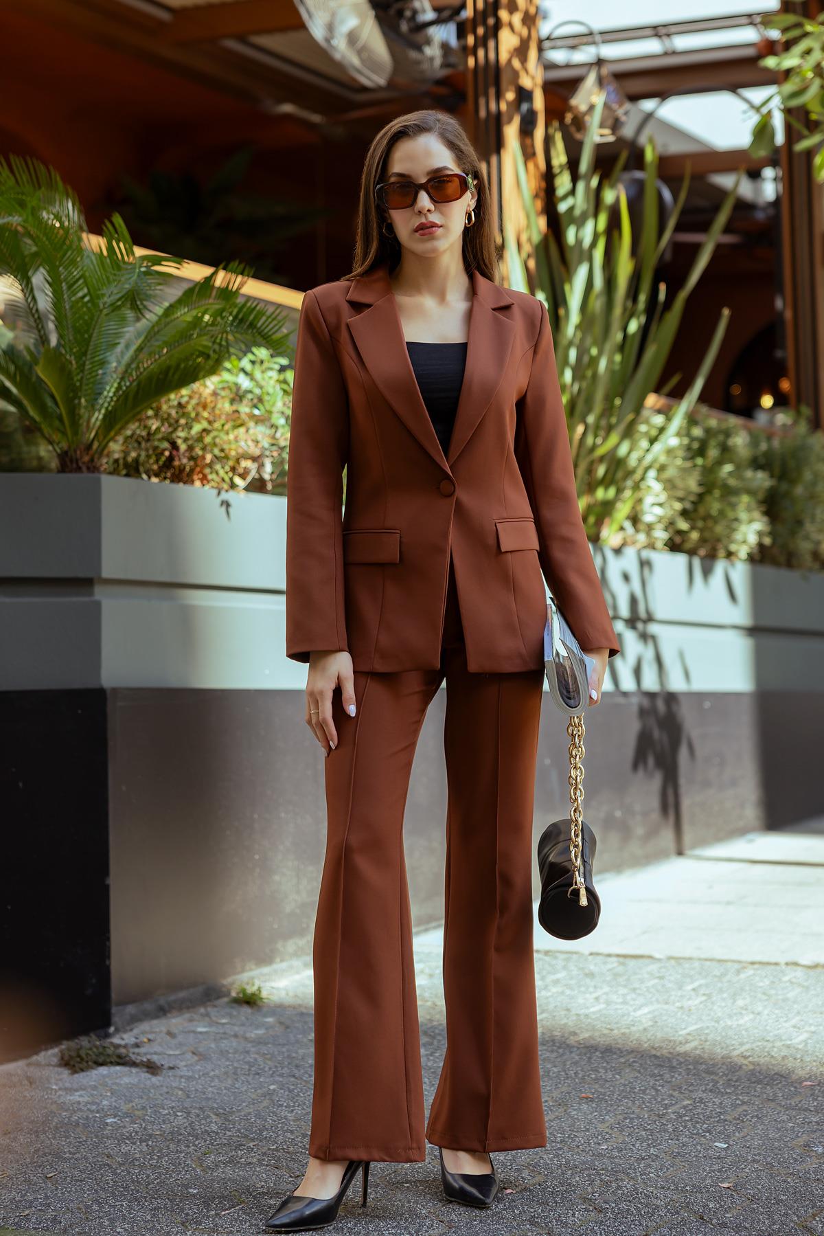 Tek Düğme Ceketli Takım - KAHVERENGİ (BEW453TKM0001112)