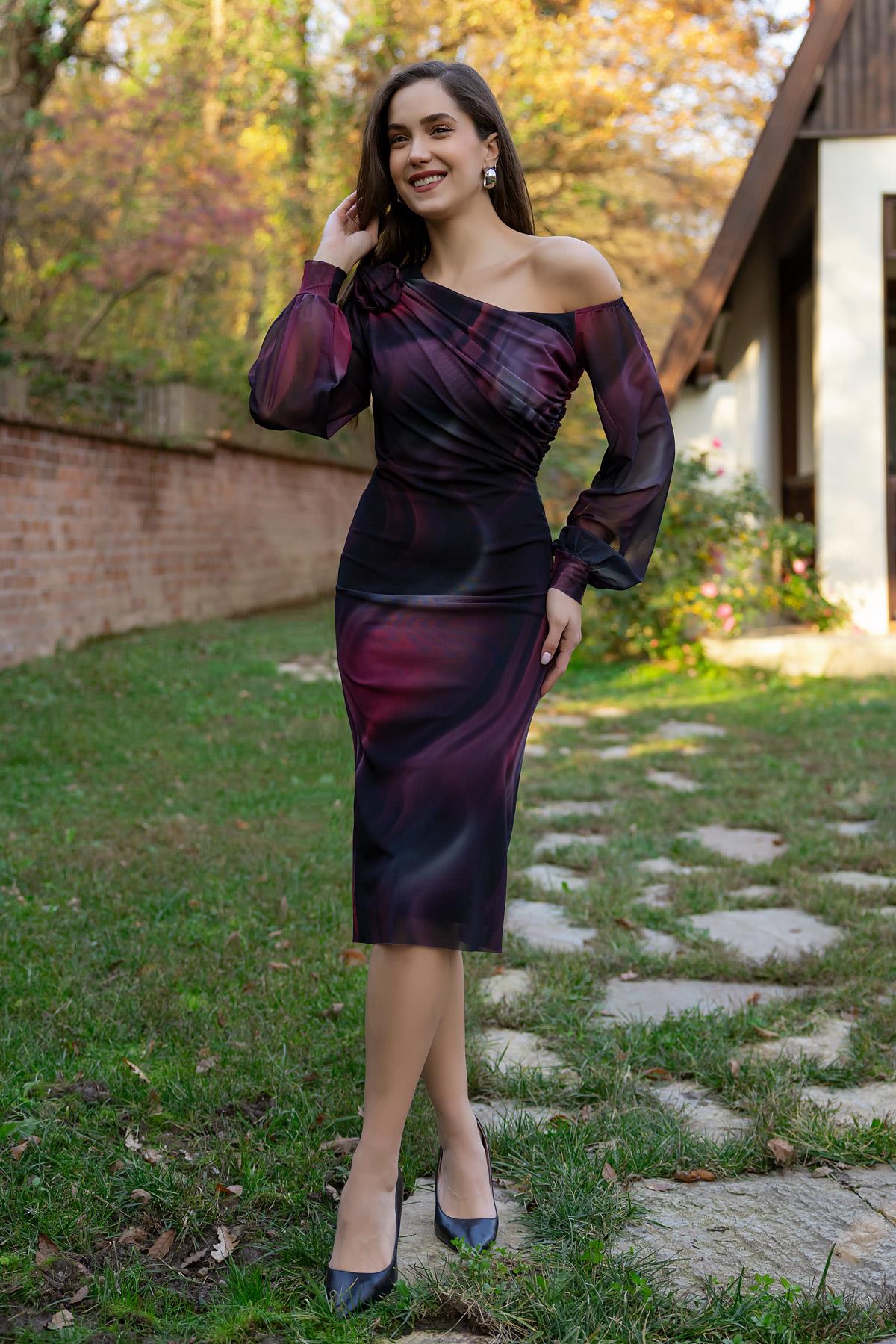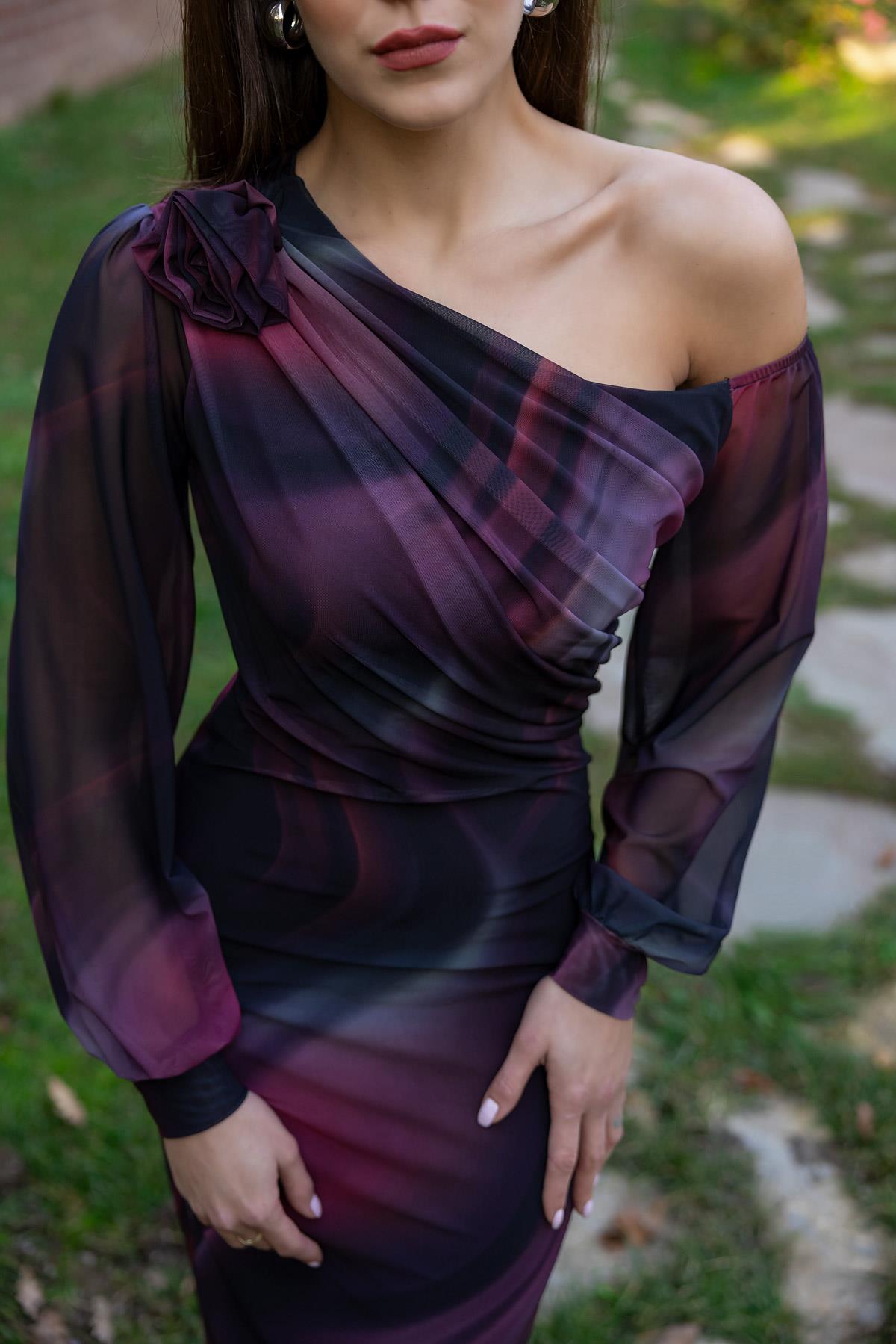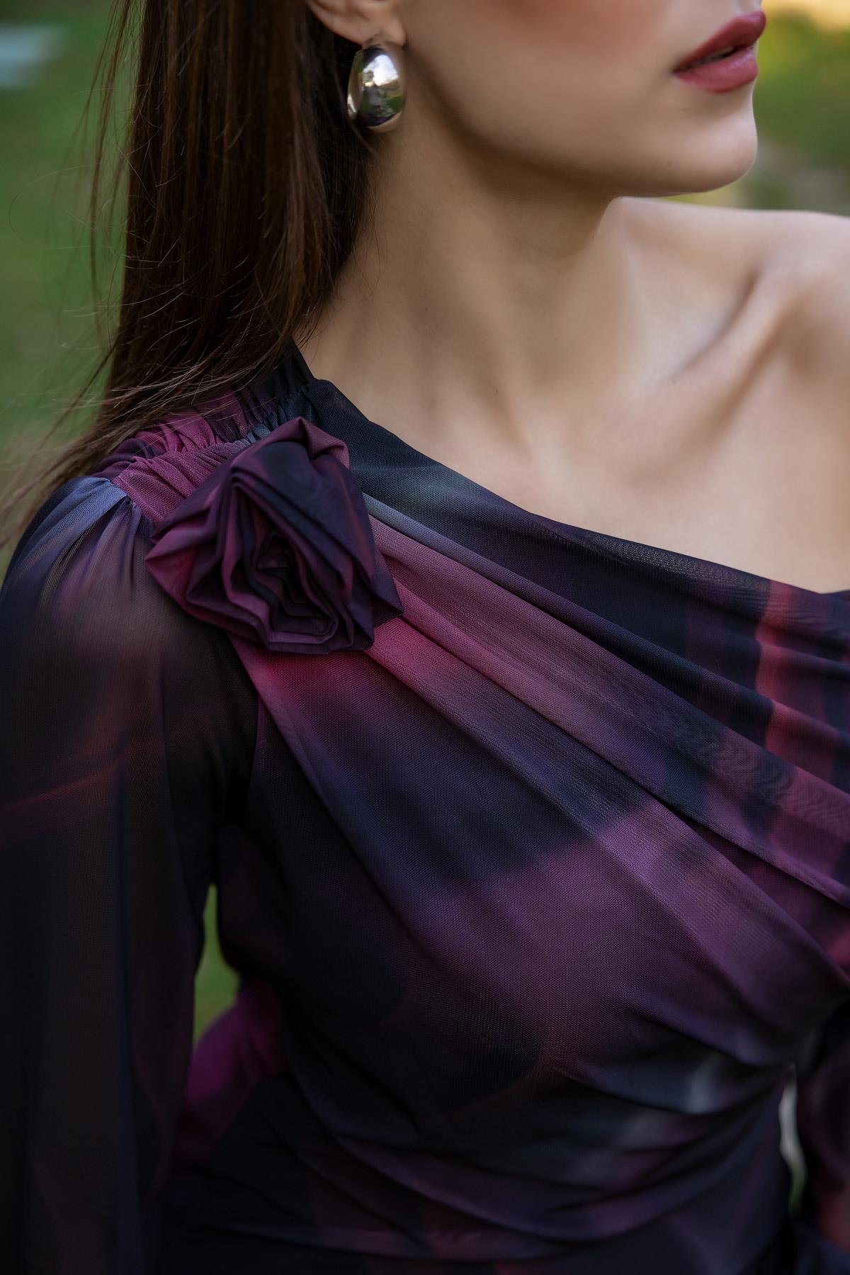 Tek Omuz Çiçek Detaylı Elbise - SİYAH (BEW528ELB0006100)