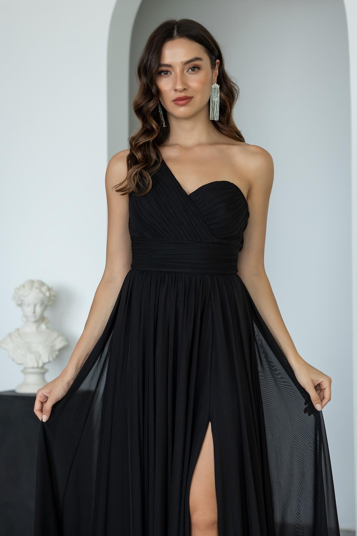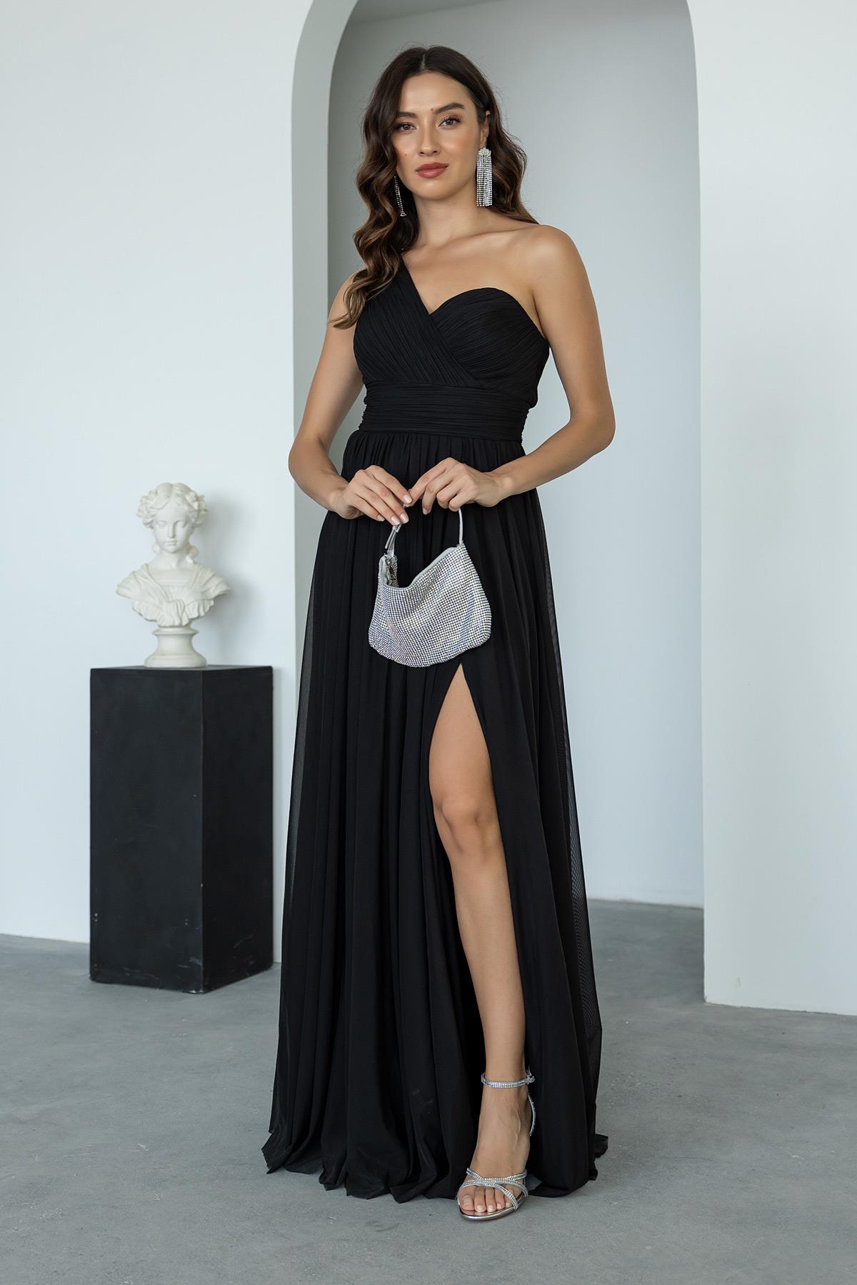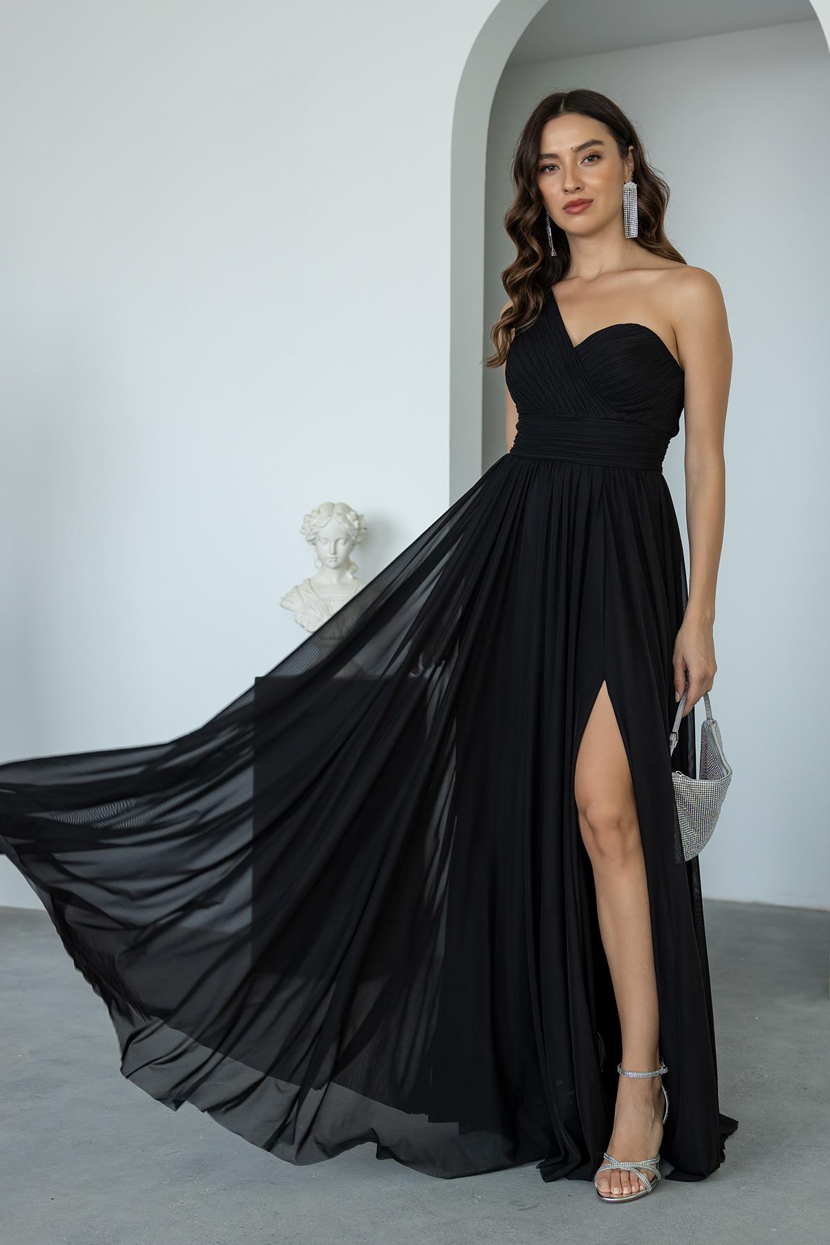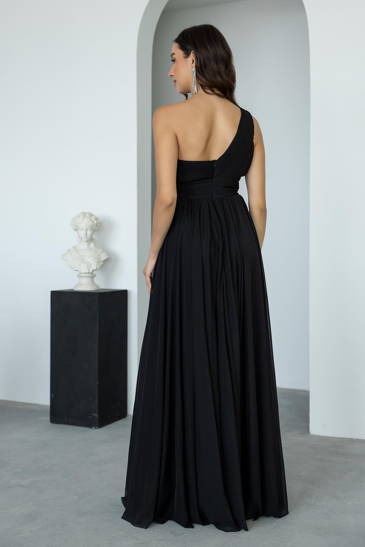 Tek Omuz Şifon Abiye - SİYAH (BDS616ABY0002100)