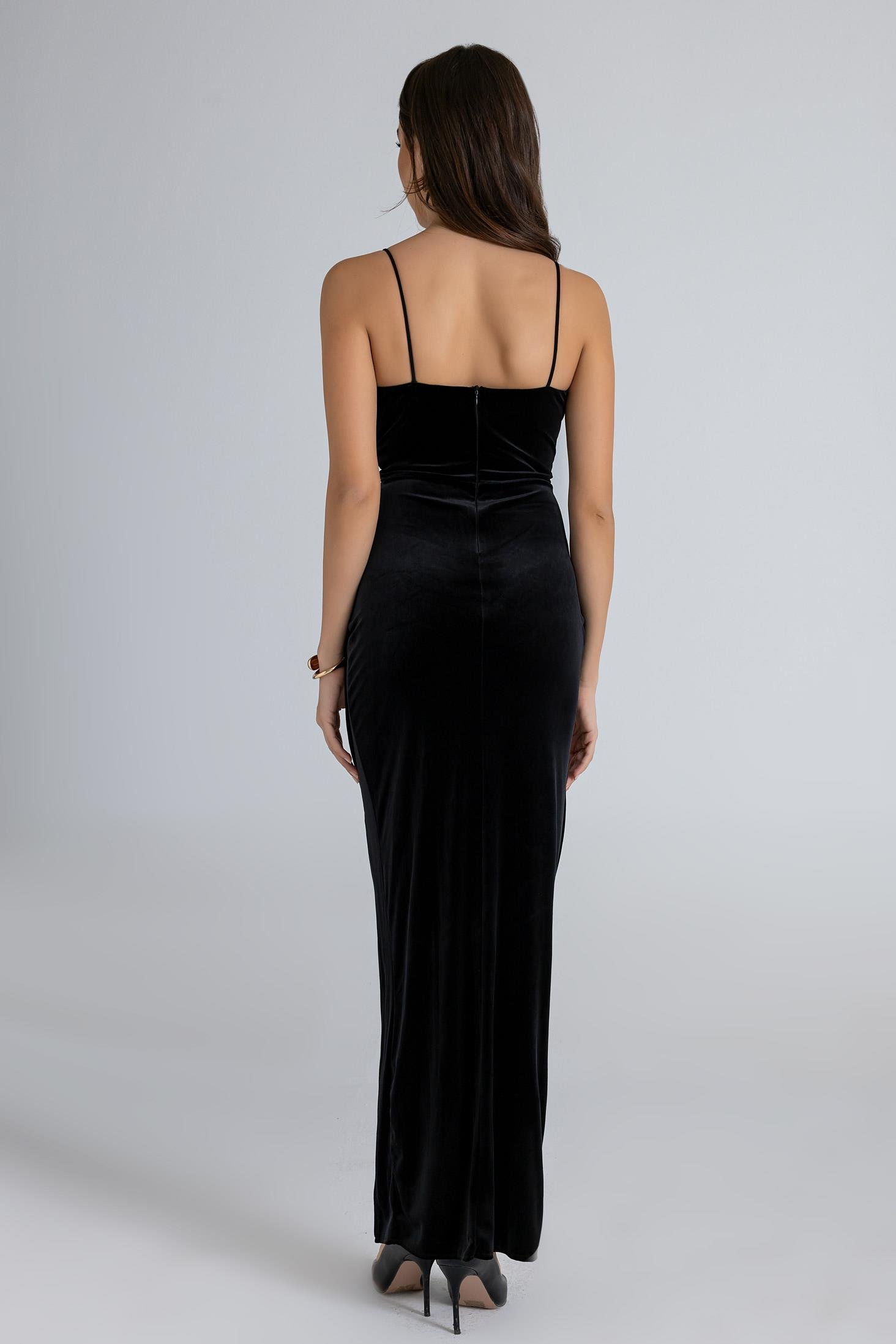Göğüs İşlemeli Kadife Abiye - SİYAH (BEW008ABY0001100)
