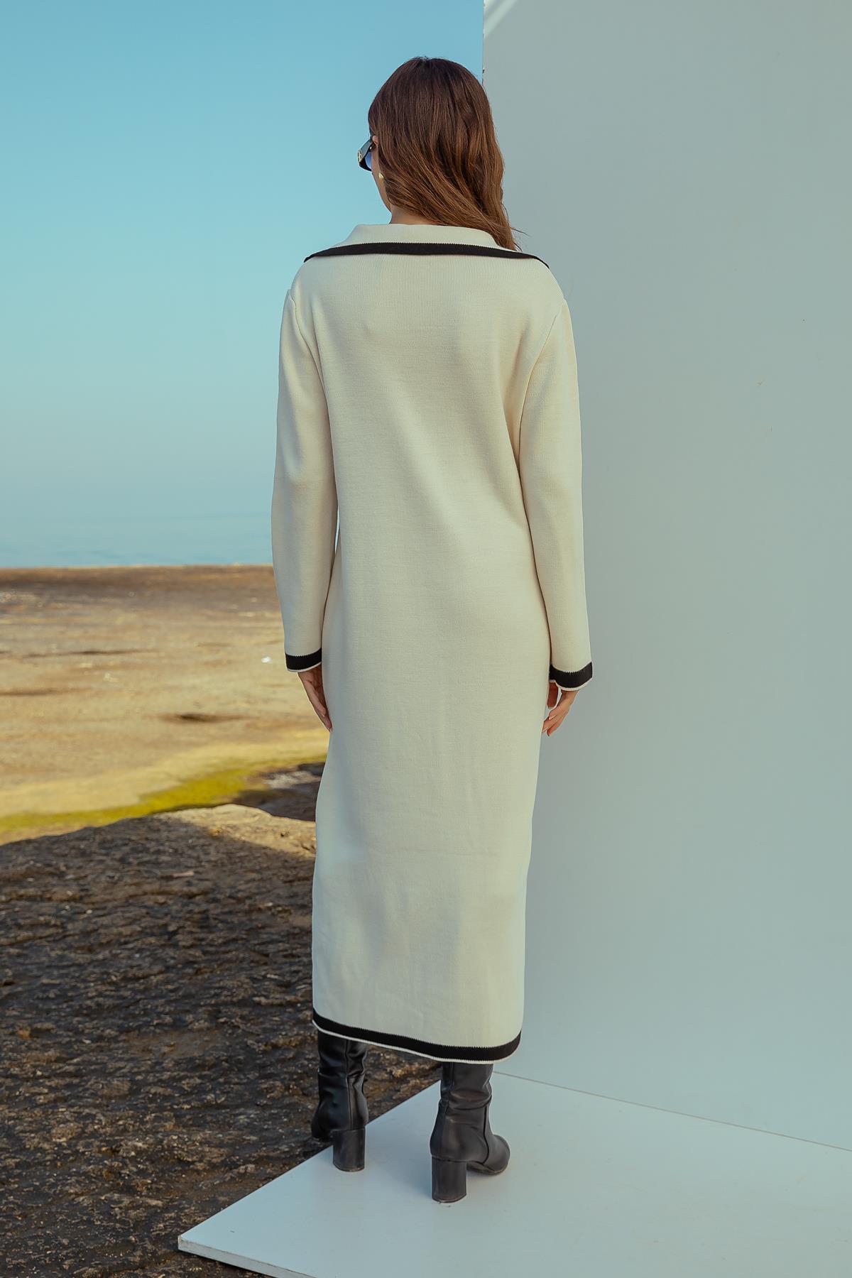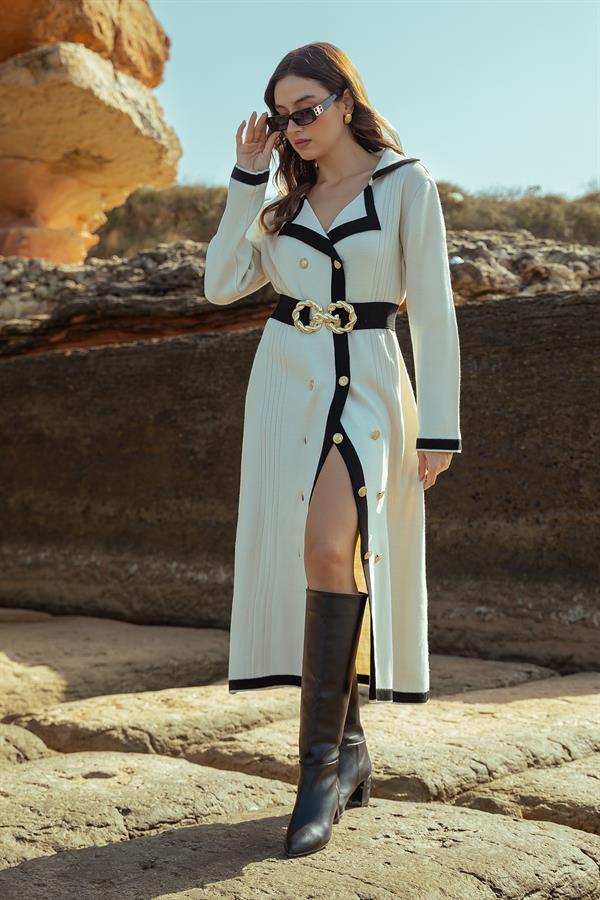 Gold Düğmeli Triko Elbise - KREM (BEW645ELB0001131)