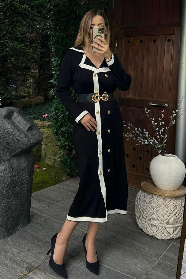 Gold Düğmeli Triko Elbise - SİYAH (BEW645ELB0001100)