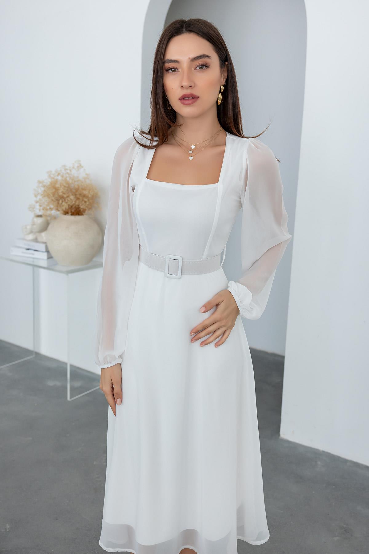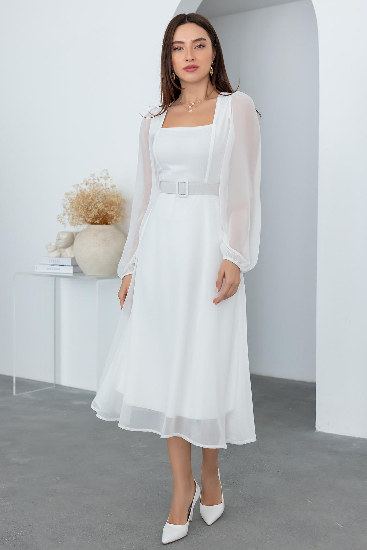 Kare Yaka Şifon Elbise - BEYAZ (BEW531ELB0033101)