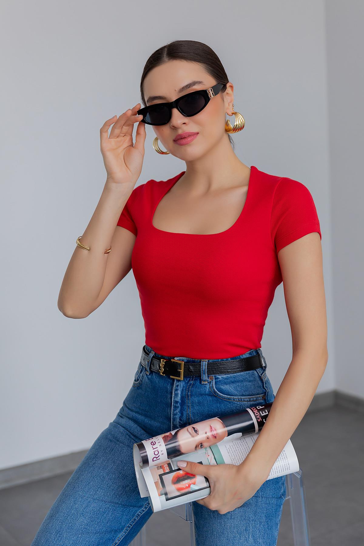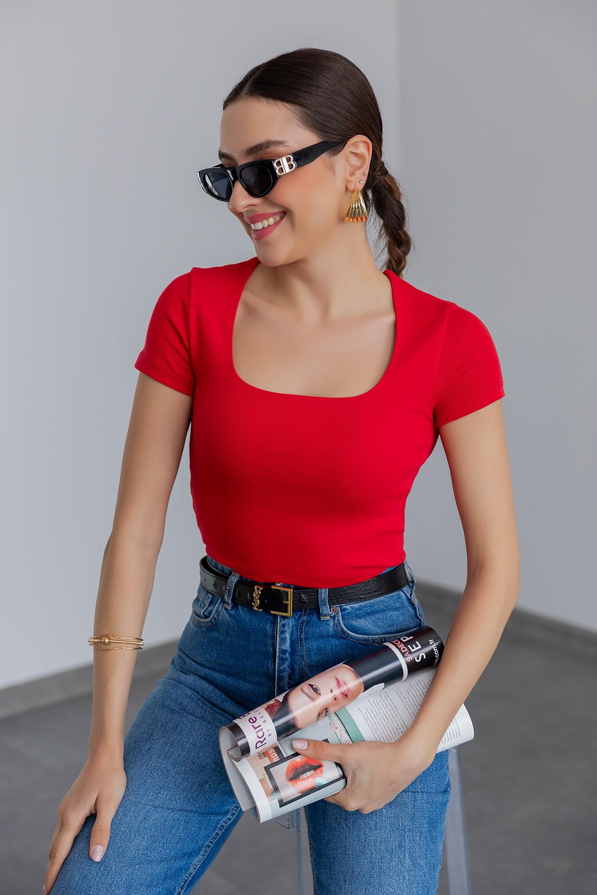 Kare Yaka T-shirt - KIRMIZI (BDS524TSH0001124)