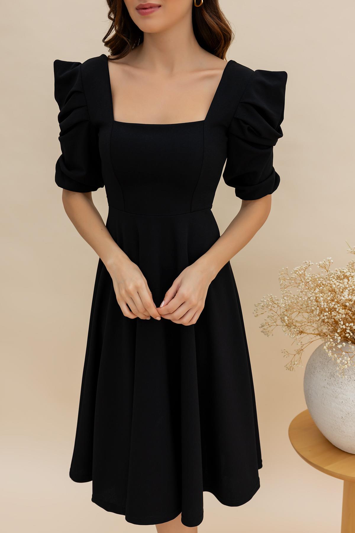 Kare Yaka Volanlı Elbise - SİYAH (BCW065ELB0012100)