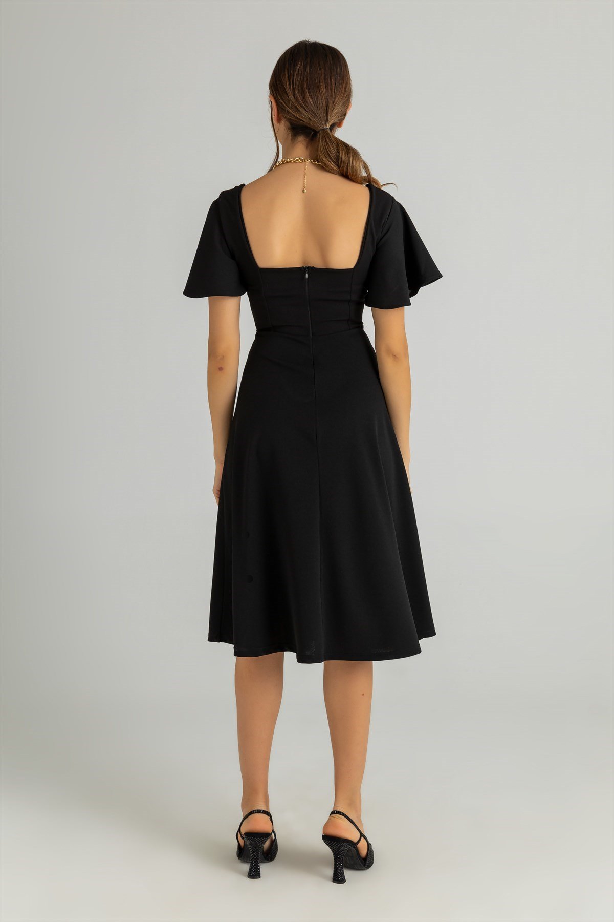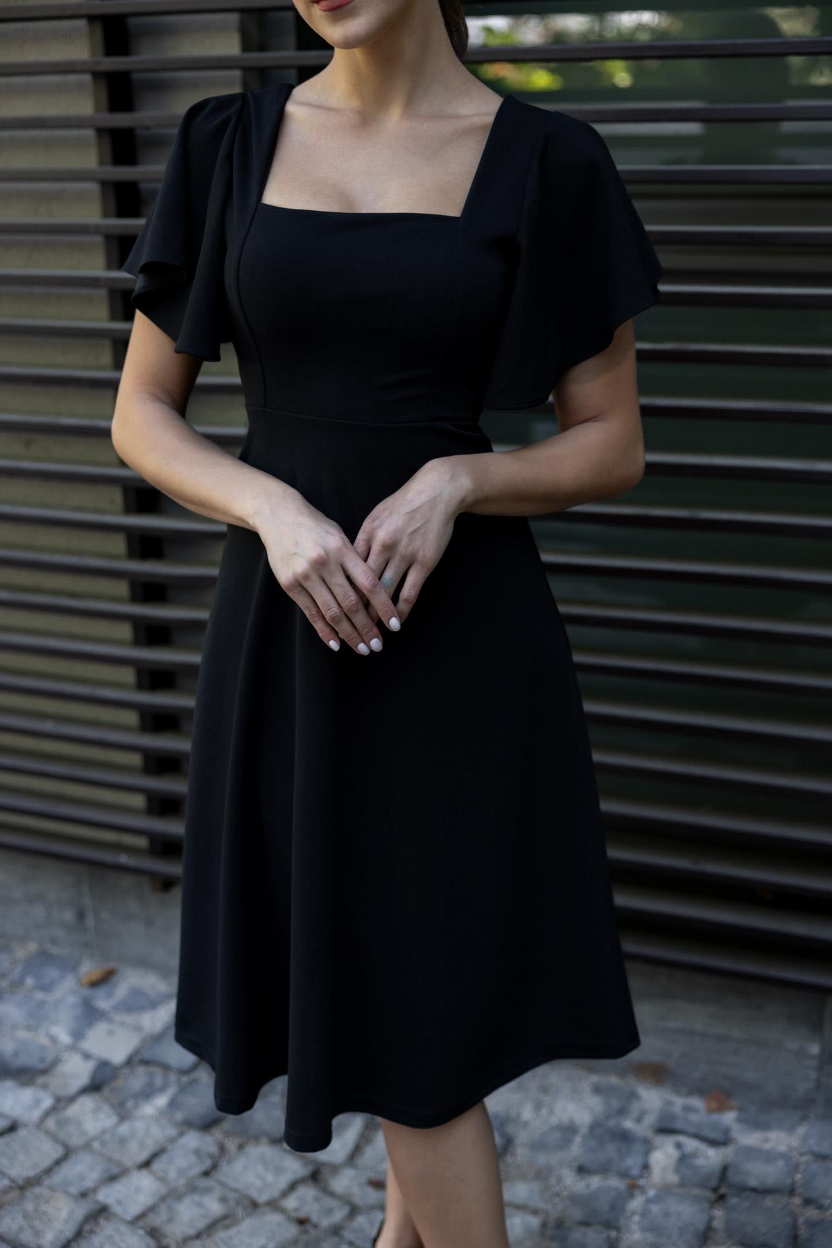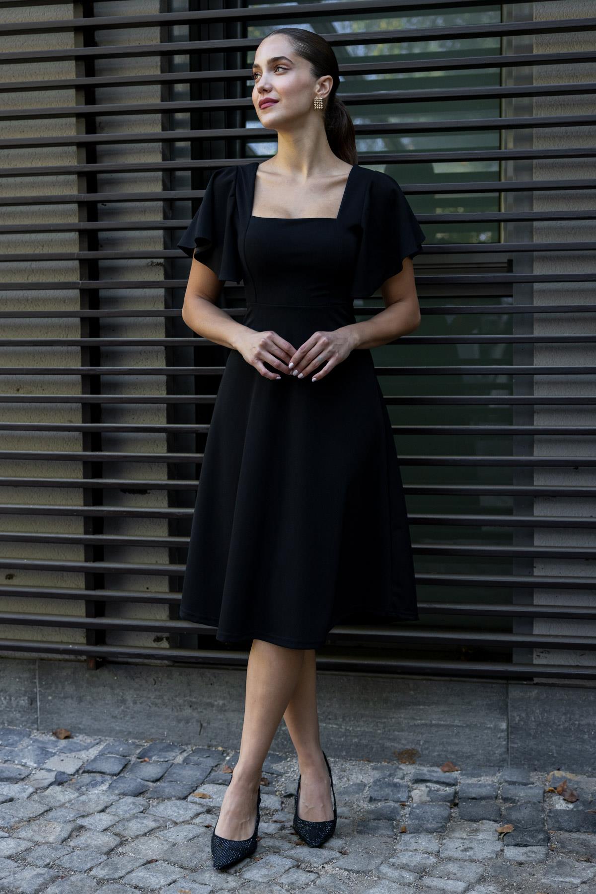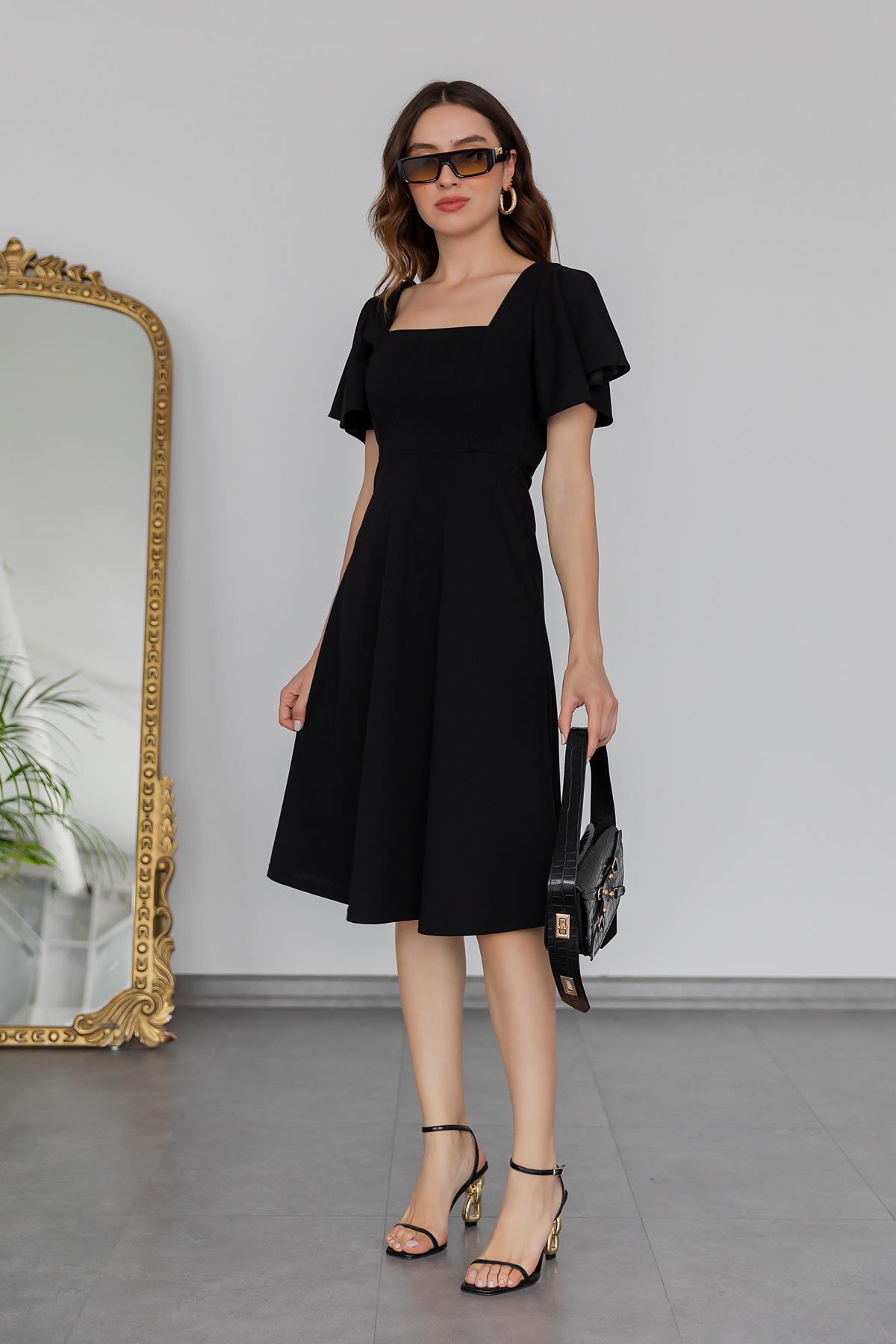 Kol Volanlı Midi Elbise - SİYAH (BCS065ELB0018100)