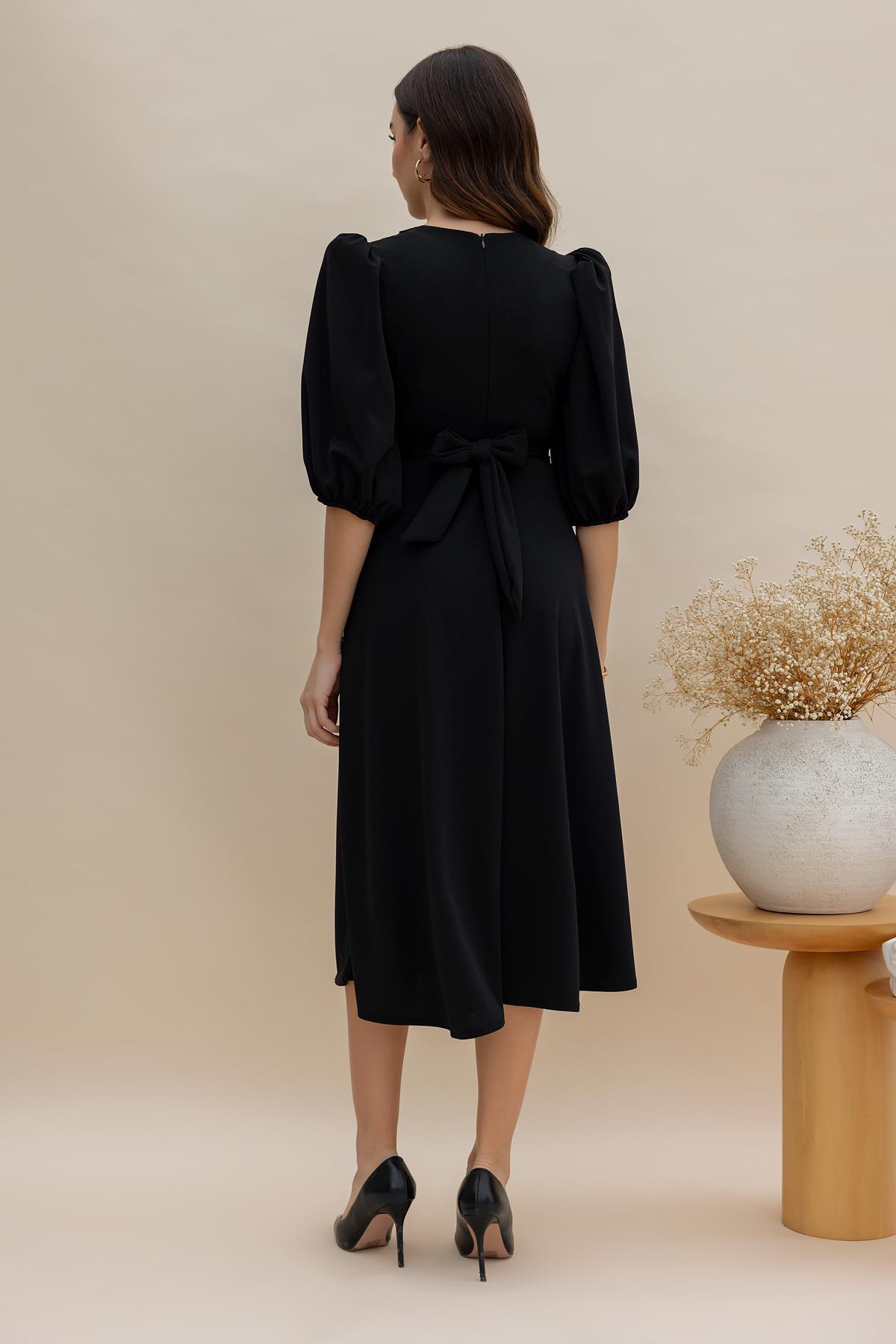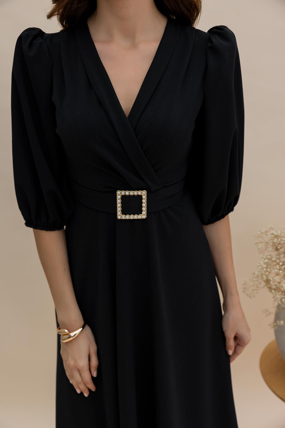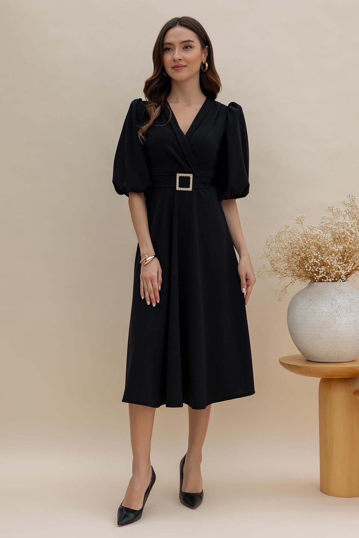 Kruvaze Yakalı Midi Elbise - SİYAH (BEW531ELB0004100)