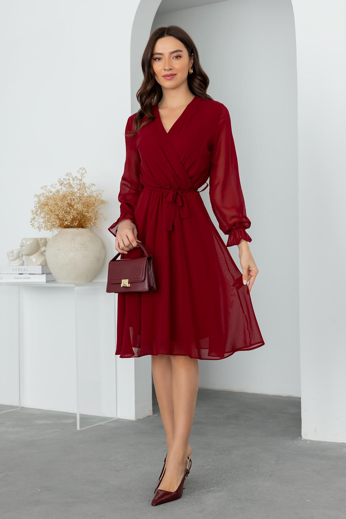 Kuşaklı Şifon Elbise - BORDO (BEW157ELB0004121)