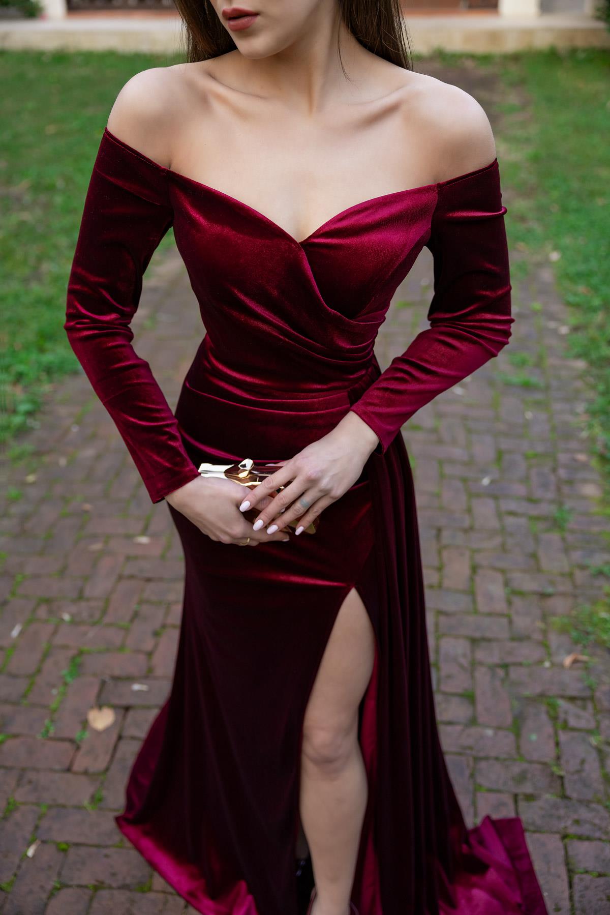 Kuyruklu Kadife Abiye - BORDO (BEW603ABY0002121)
