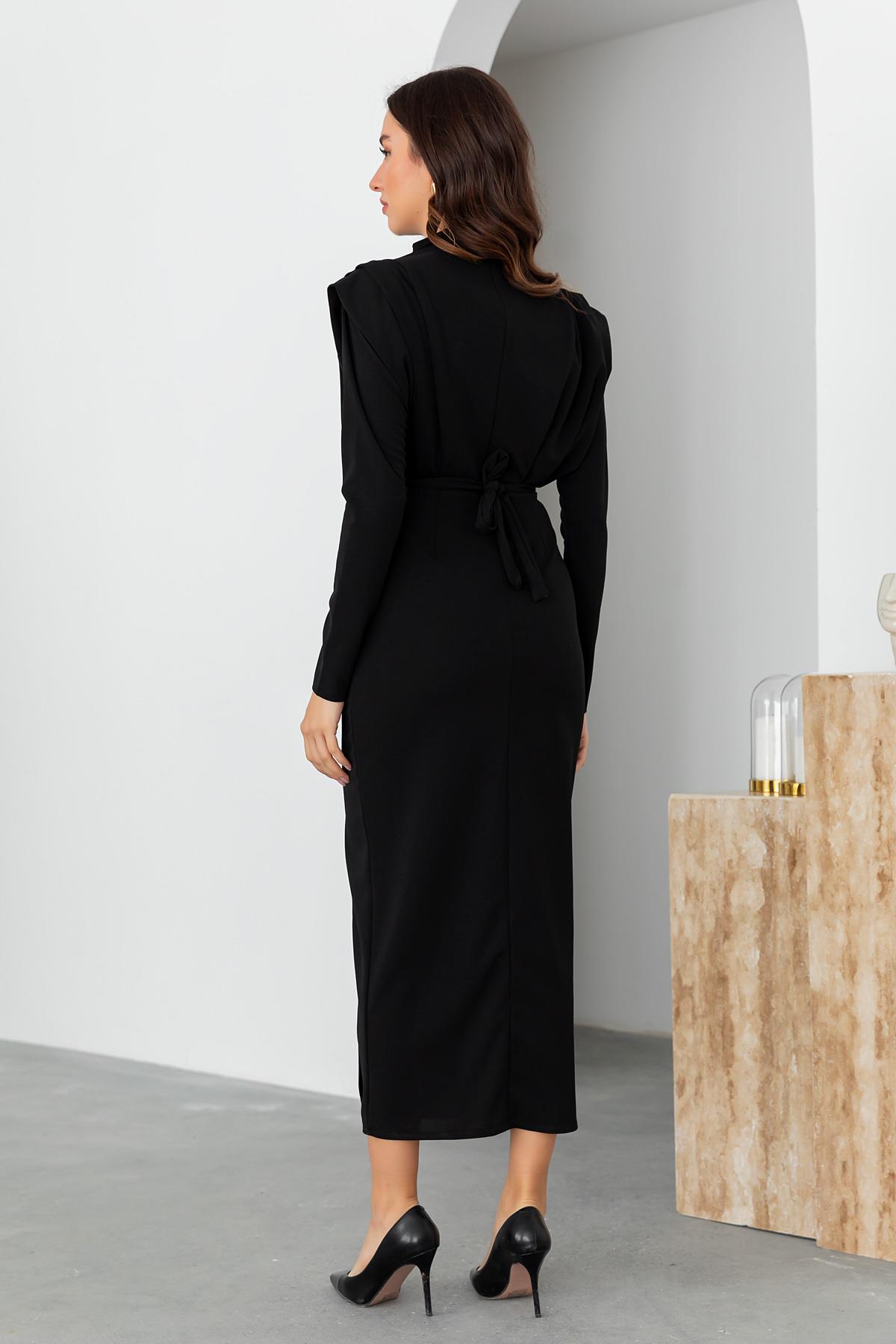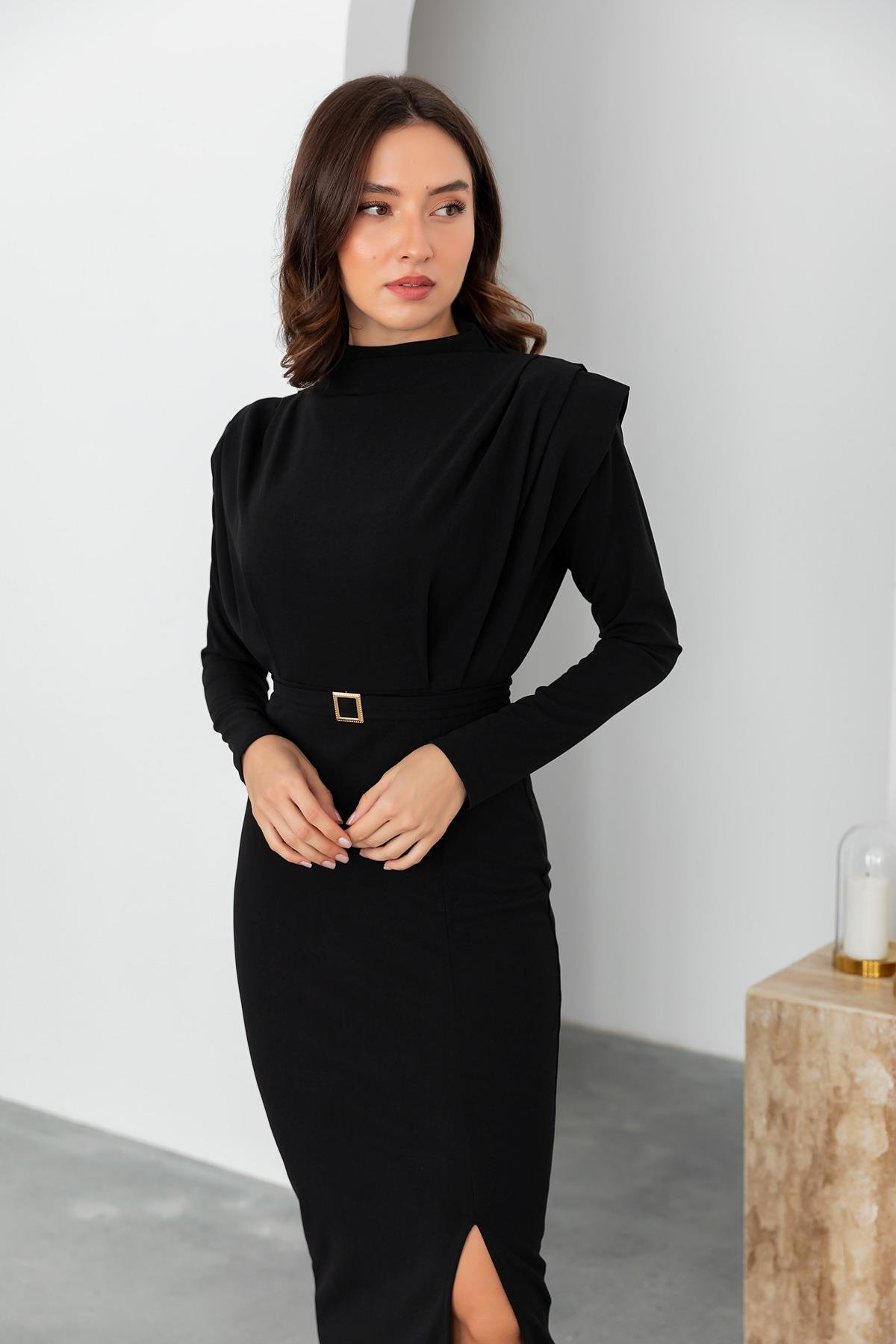 Omuz Vatka Kuşaklı Elbise - SİYAH (BDW531ELB0053100)