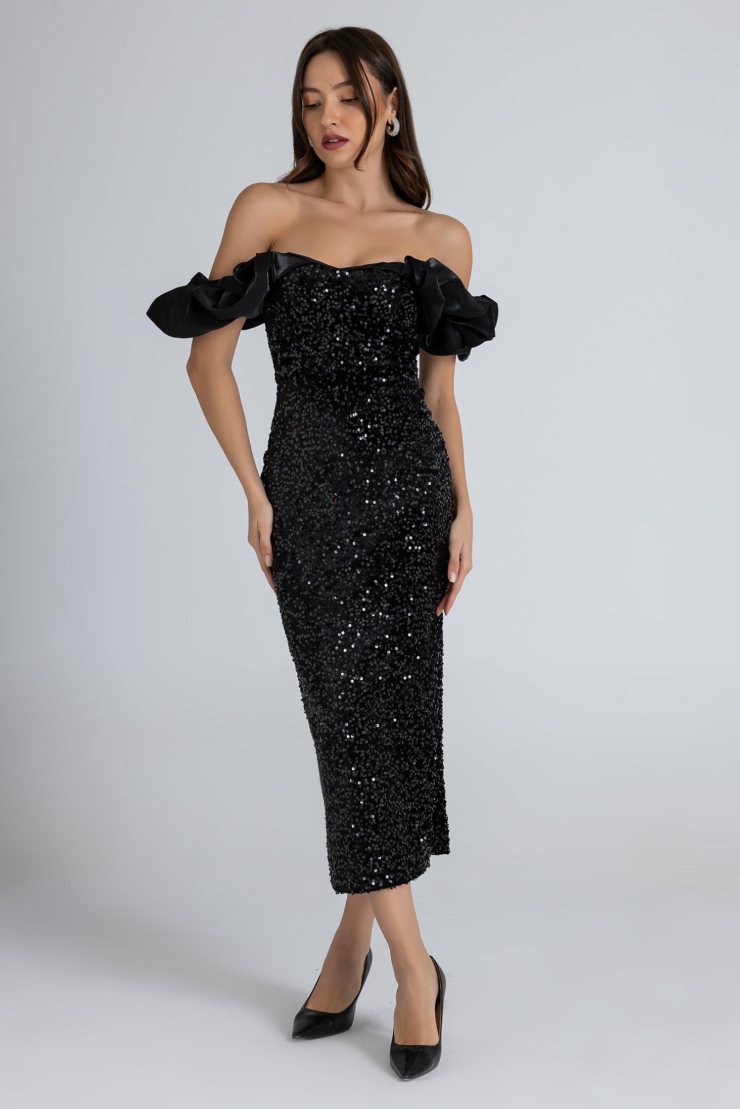 Payetli Kalem Elbise - SİYAH (BEW383ABY0001100)