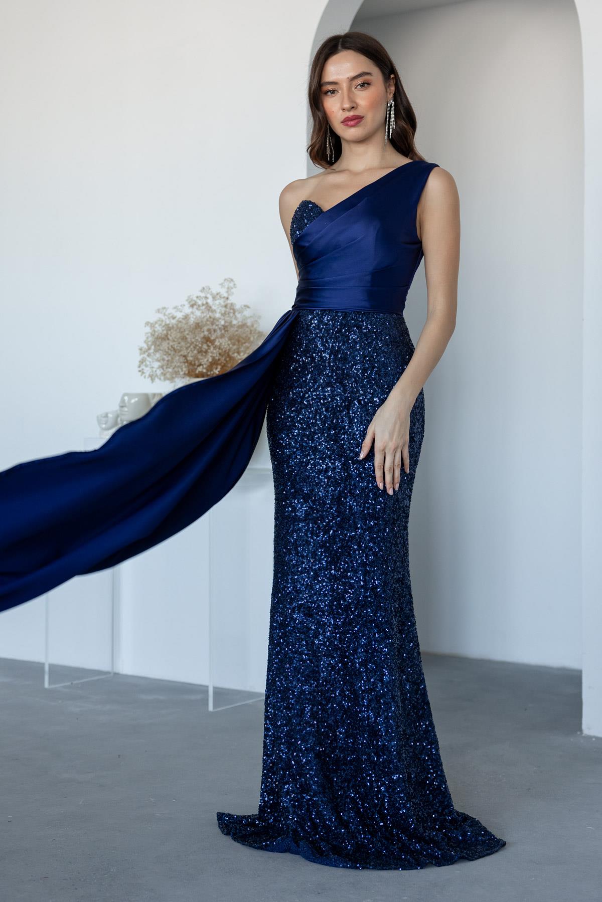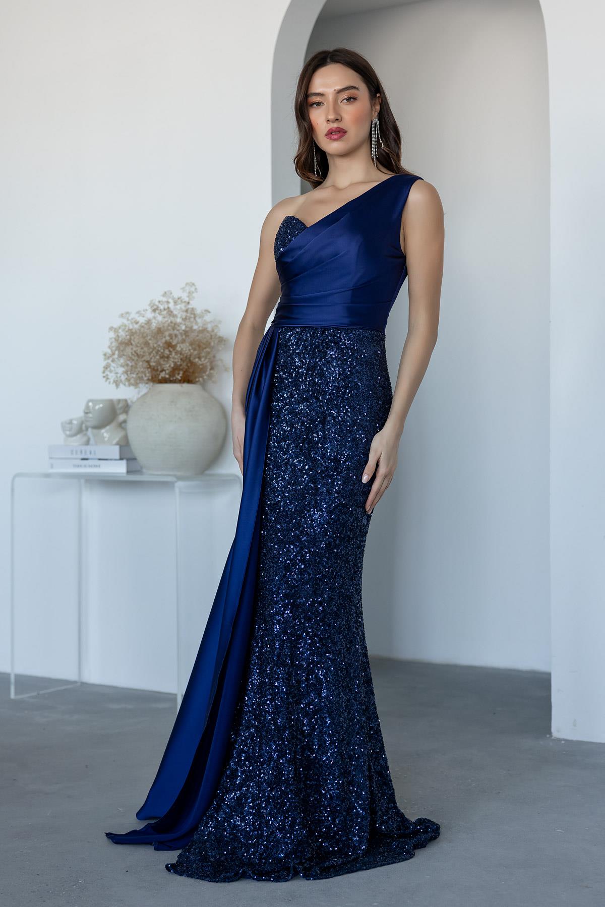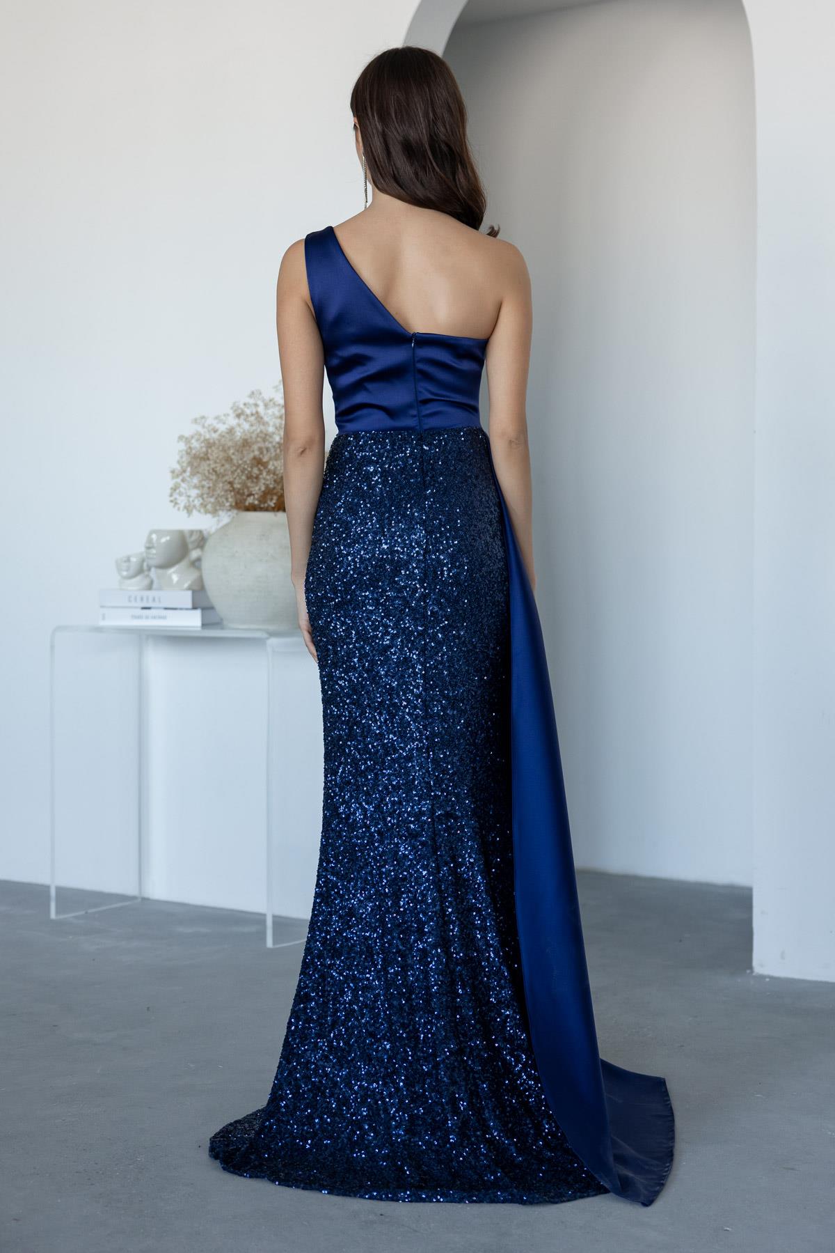 Payetli Saten Detay Abiye - LACİVERT (BEW626ABY0006110)