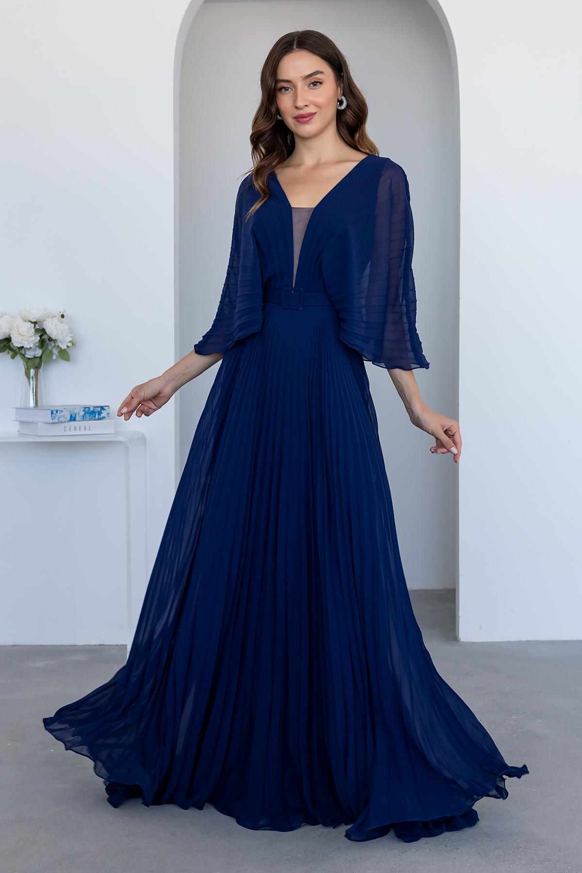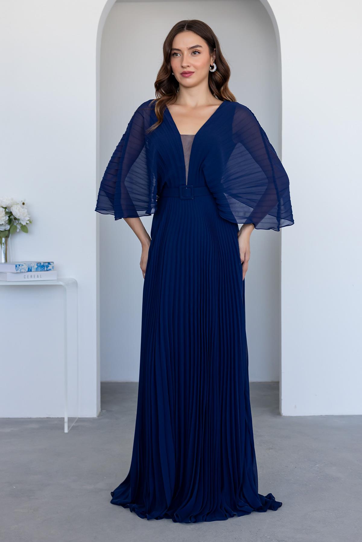 Piliseli Şifon Abiye - LACİVERT (BDS603ABY0011110)