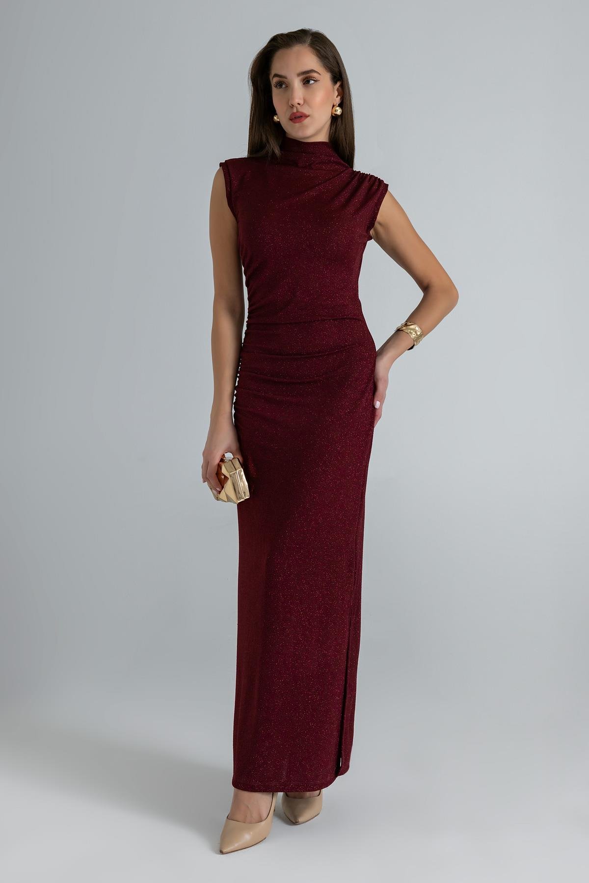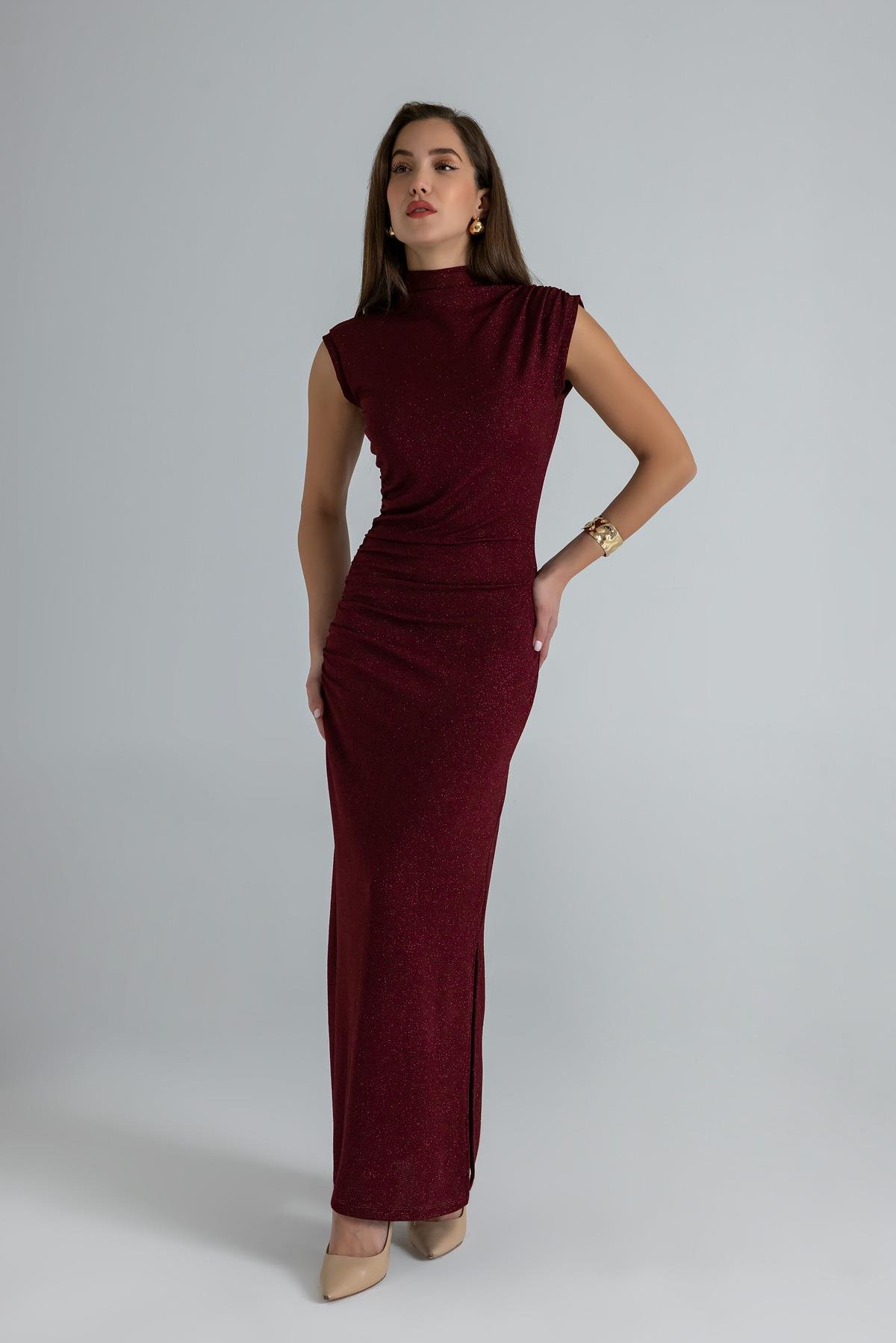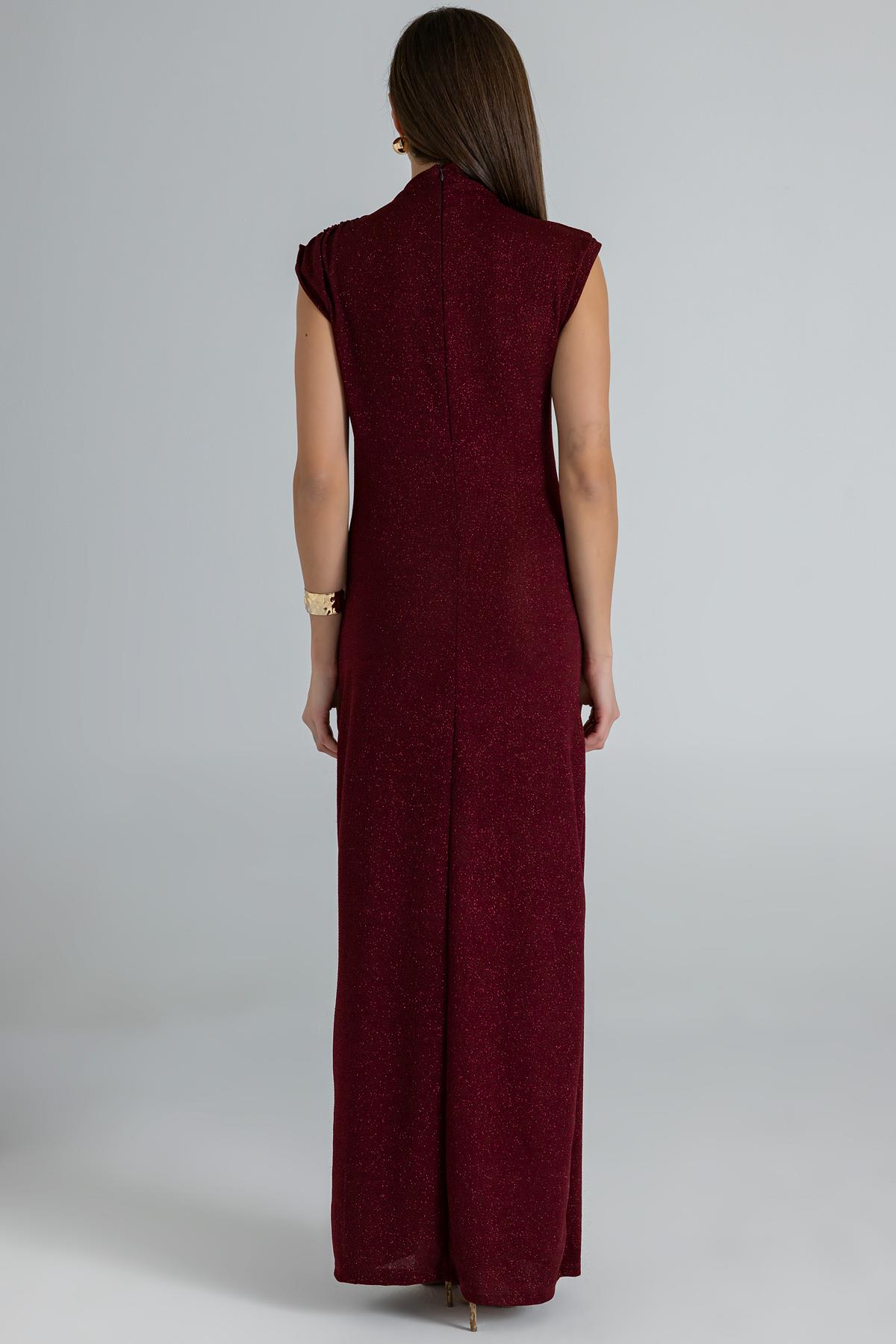 Simli Büzgülü Elbise - BORDO (BEW596ELB0001121)