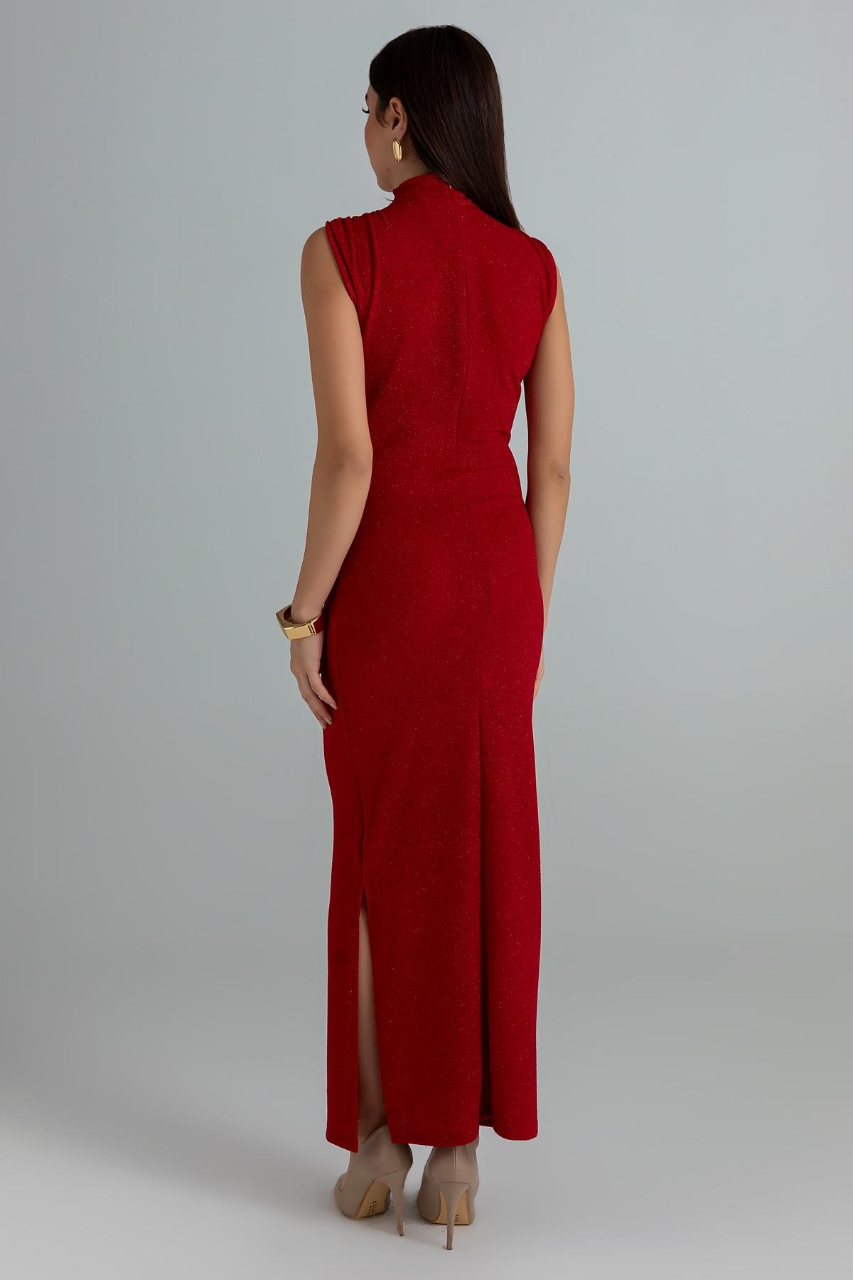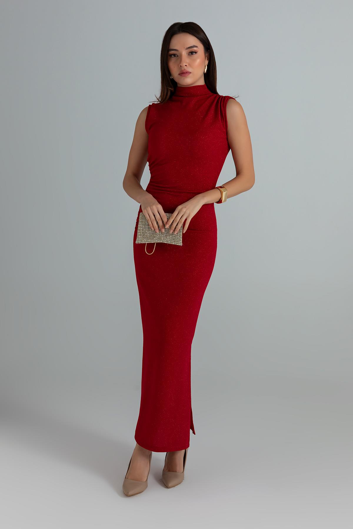 Simli Büzgülü Elbise - KIRMIZI (BEW596ELB0001124)