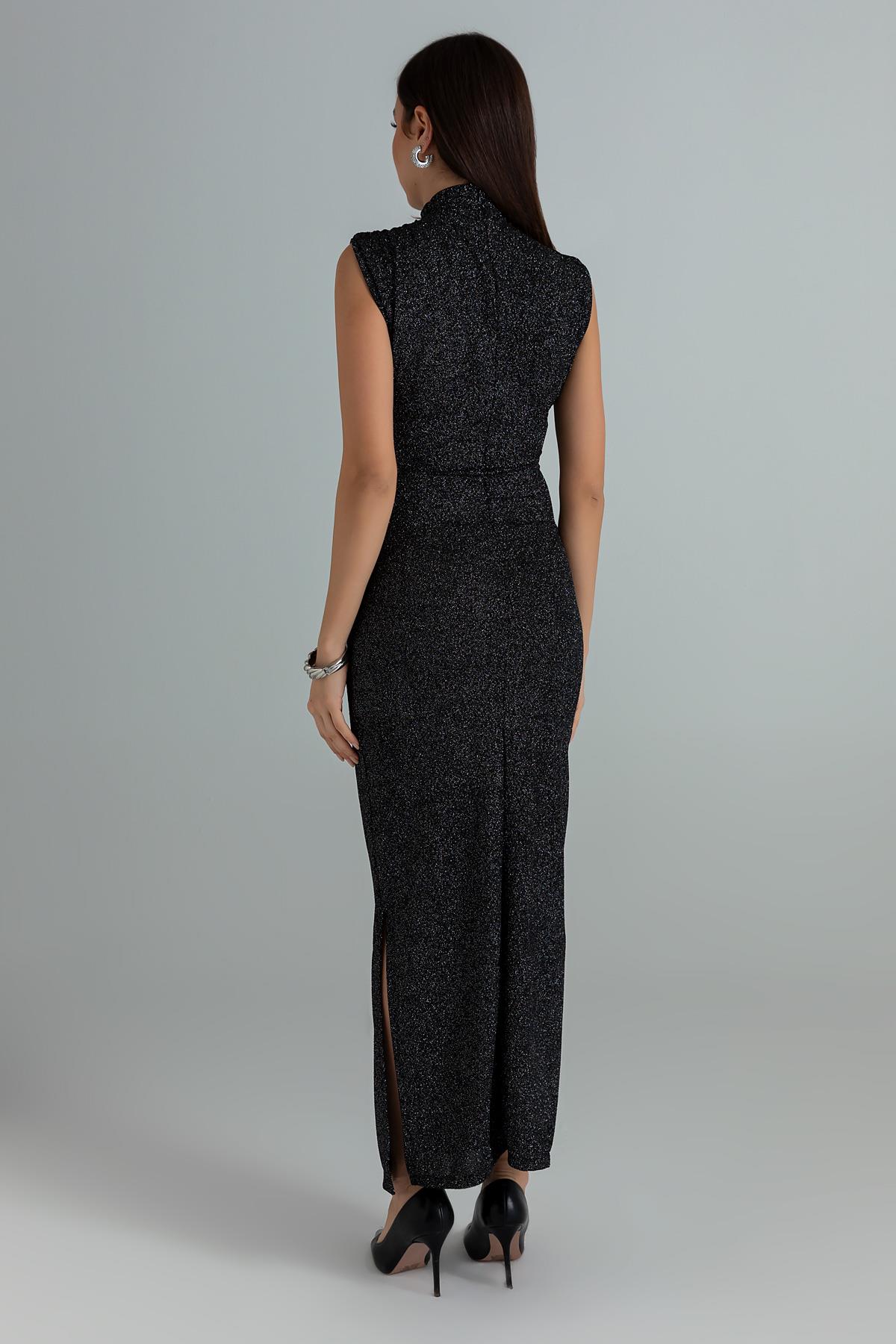 Simli Büzgülü Elbise - SİYAH (BEW596ELB0001100)