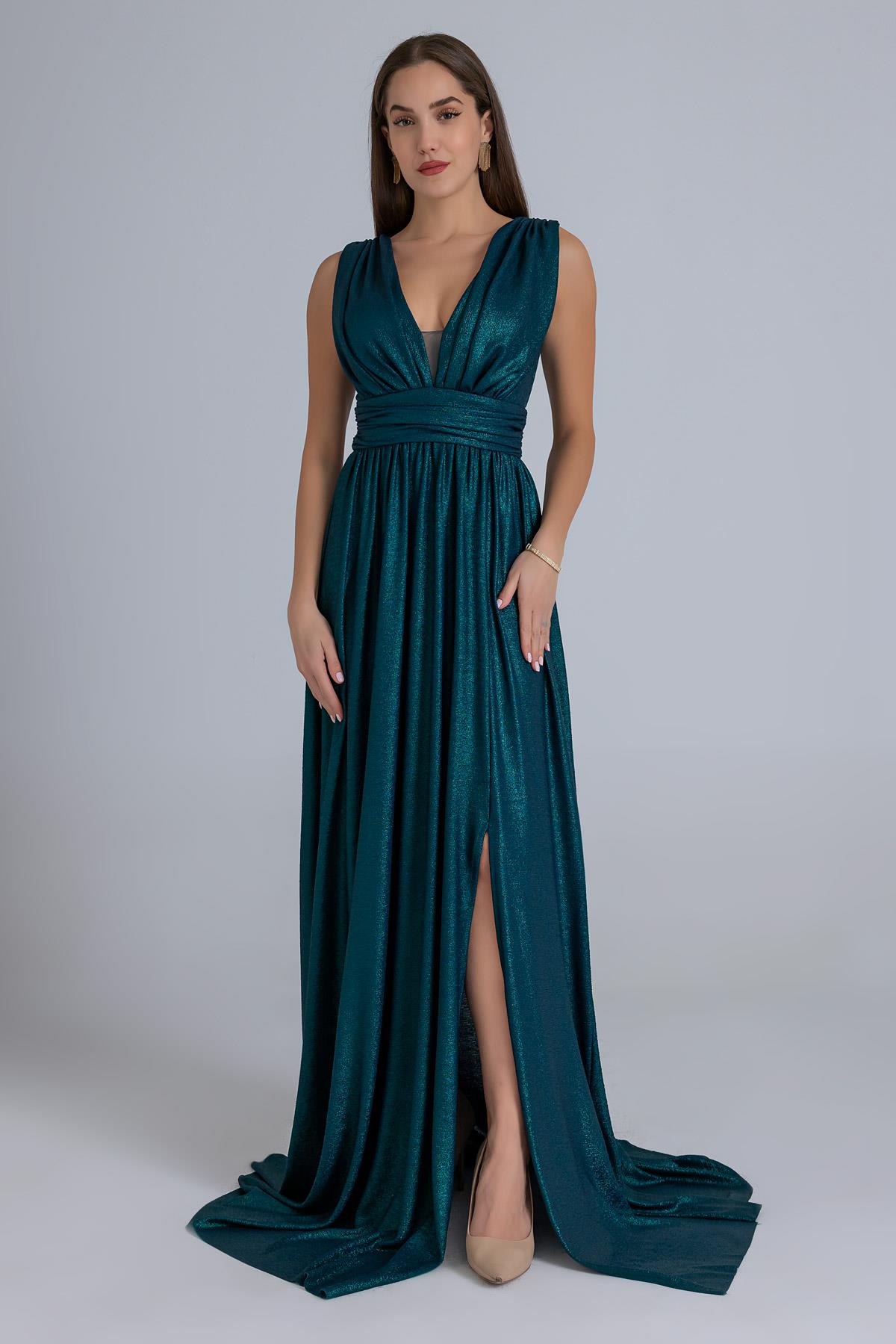 Simli Yırtmaçlı Abiye - ZÜMRÜT YEŞİL (BEW008ABY0007201)