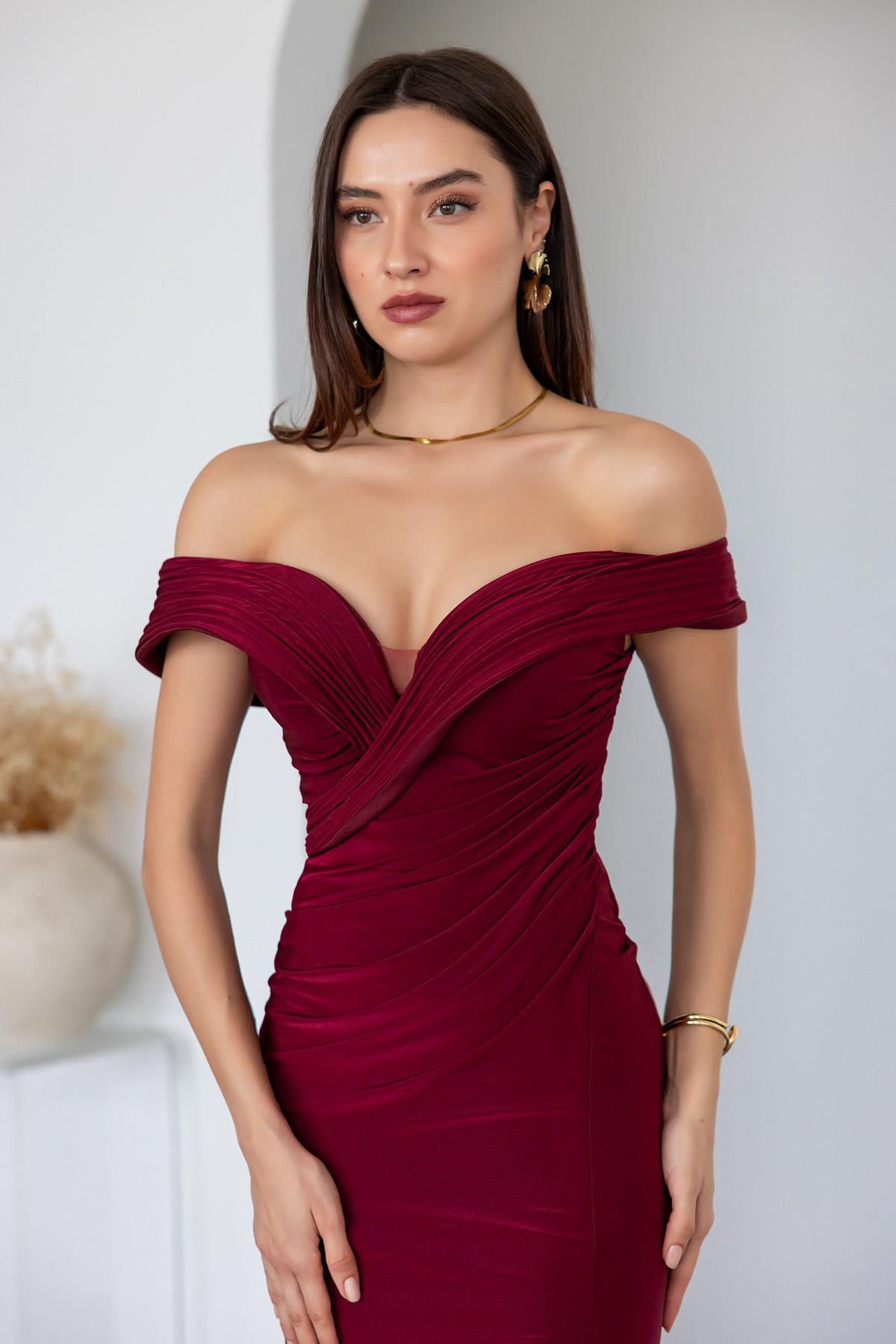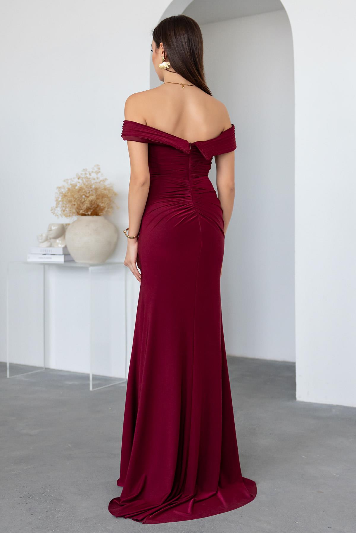 Straplez Gipeli Abiye - BORDO (BEW626ABY0008121)