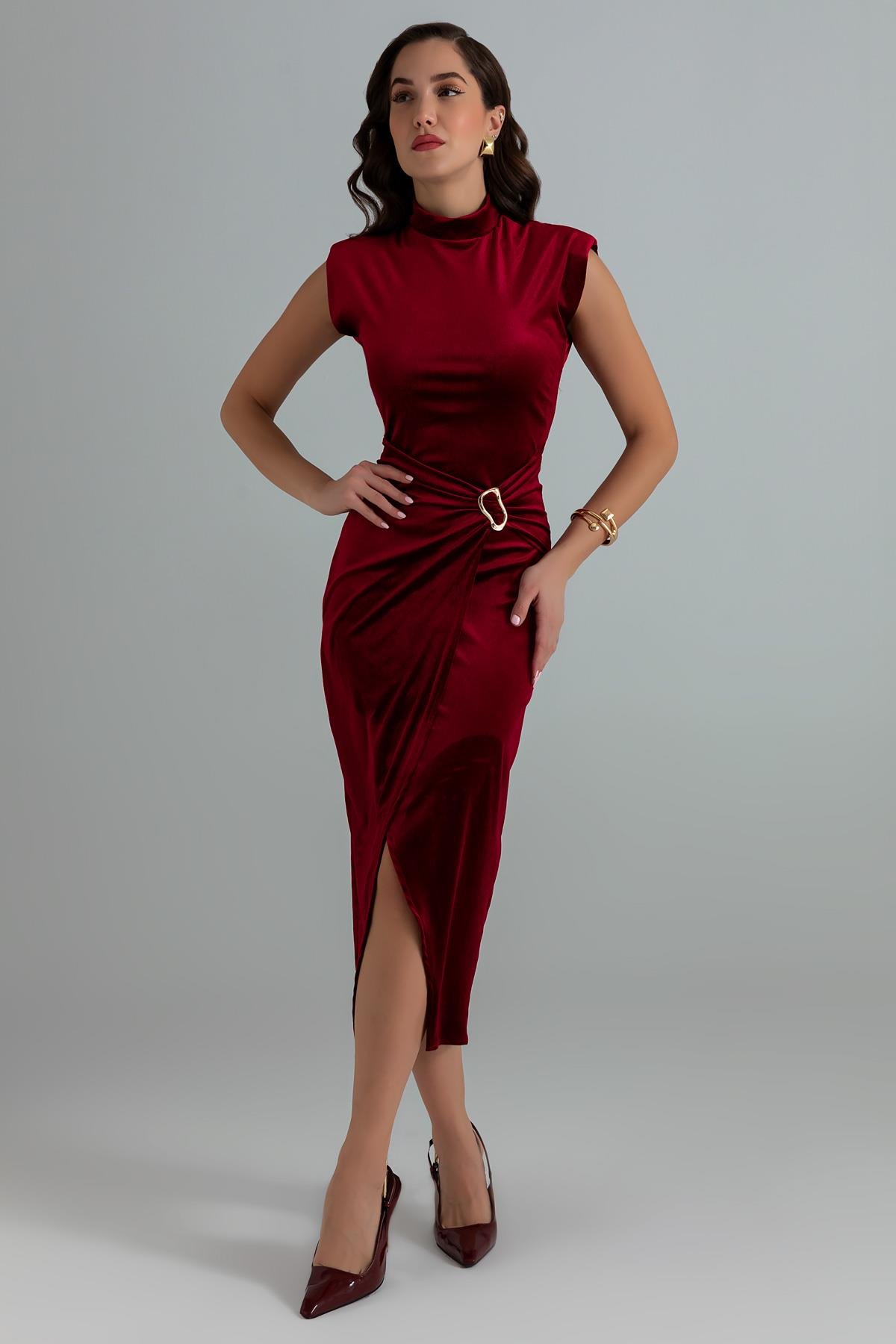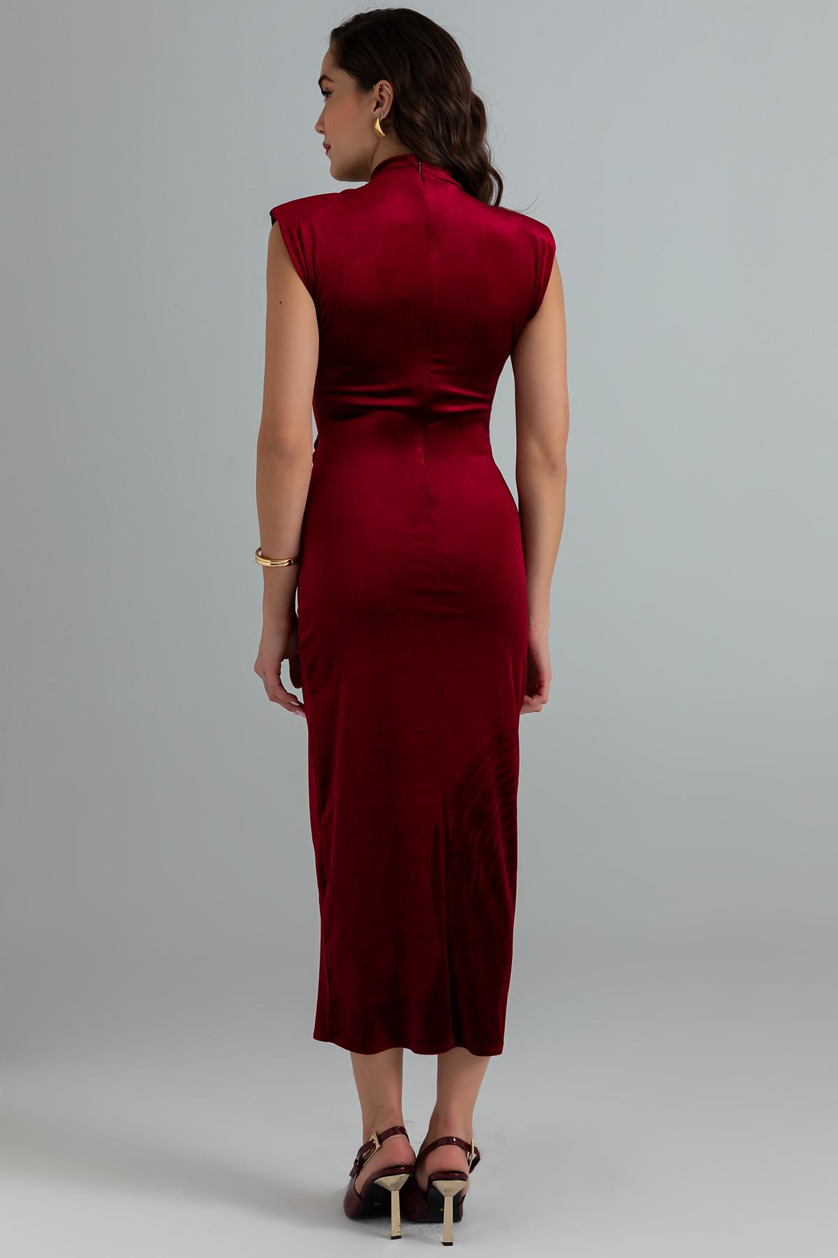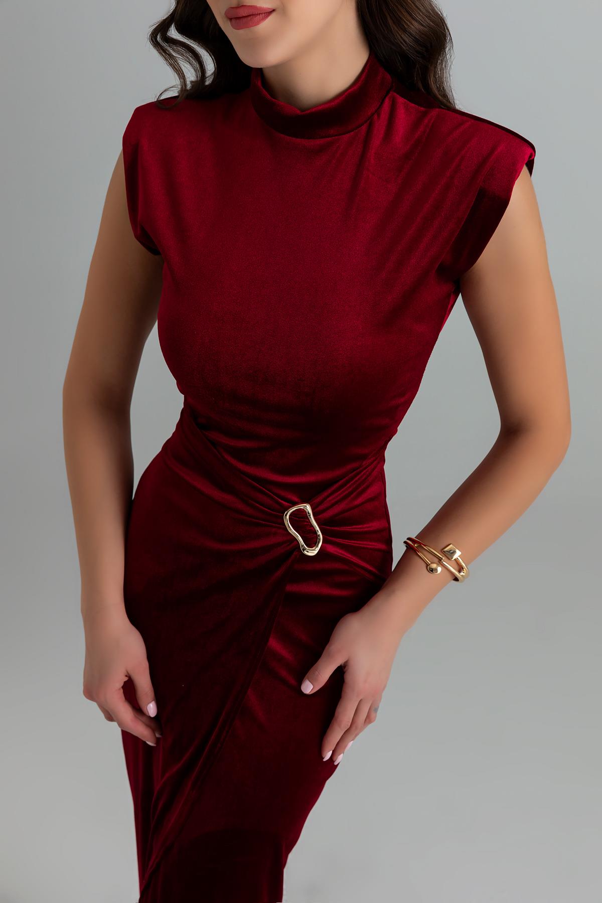 Tokalı Uzun Kadife Elbise - BORDO (BEW531ELB0049121)