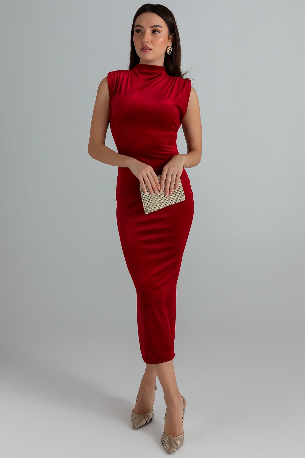 Vatkalı Kadife Elbise - BORDO (BEW574ELB0002121)