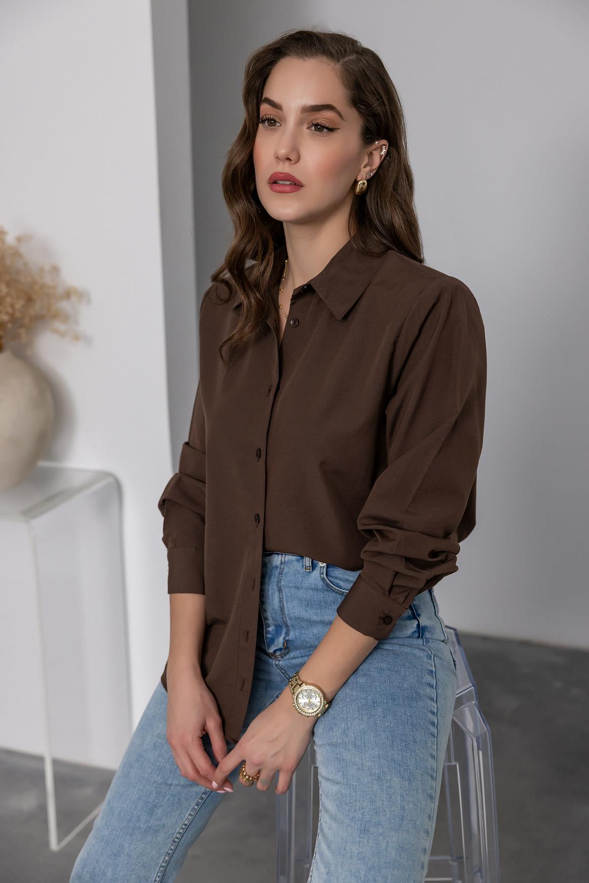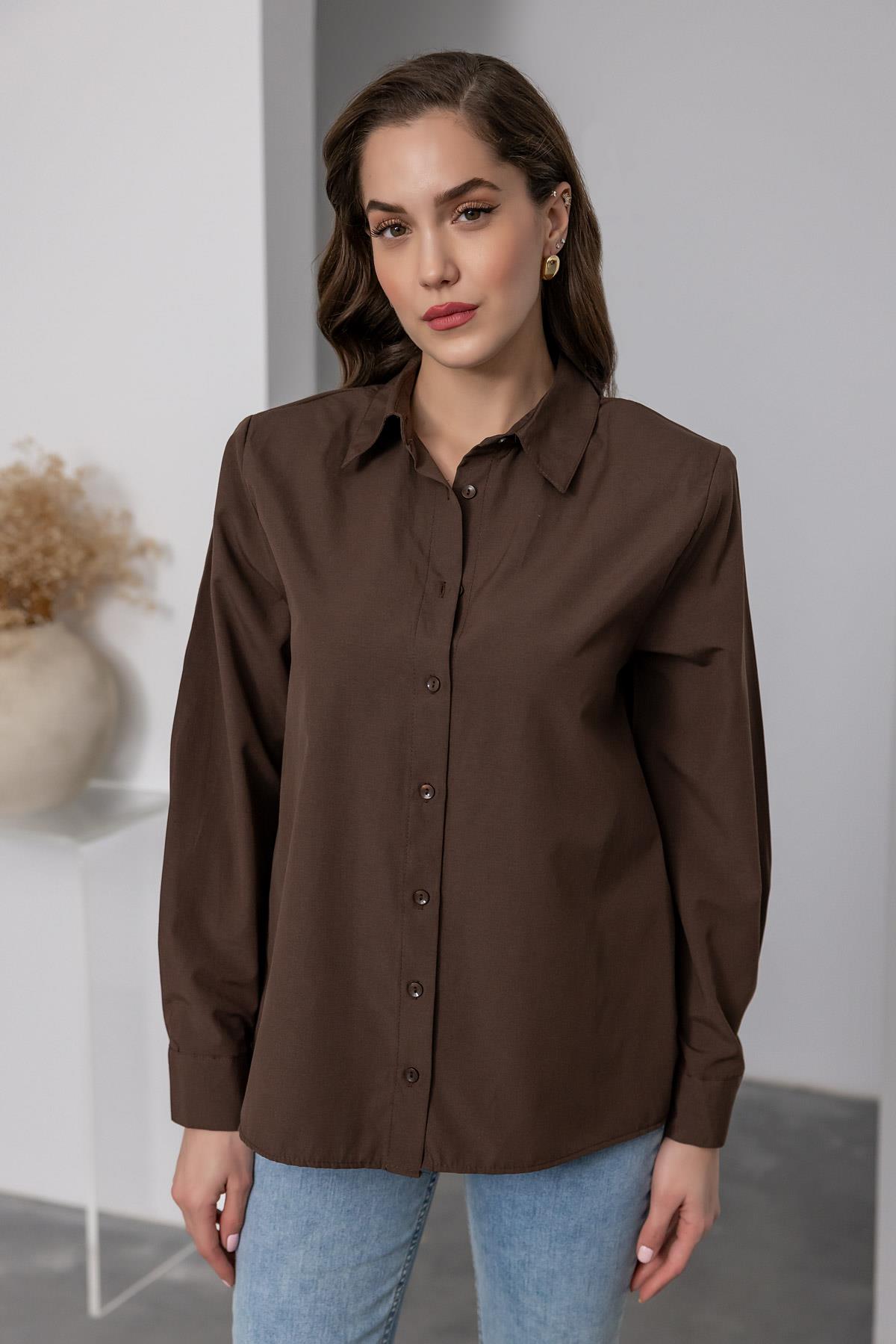 Vatkalı Klasik Gömlek - KAHVERENGİ (BEW389GÖM0001112)