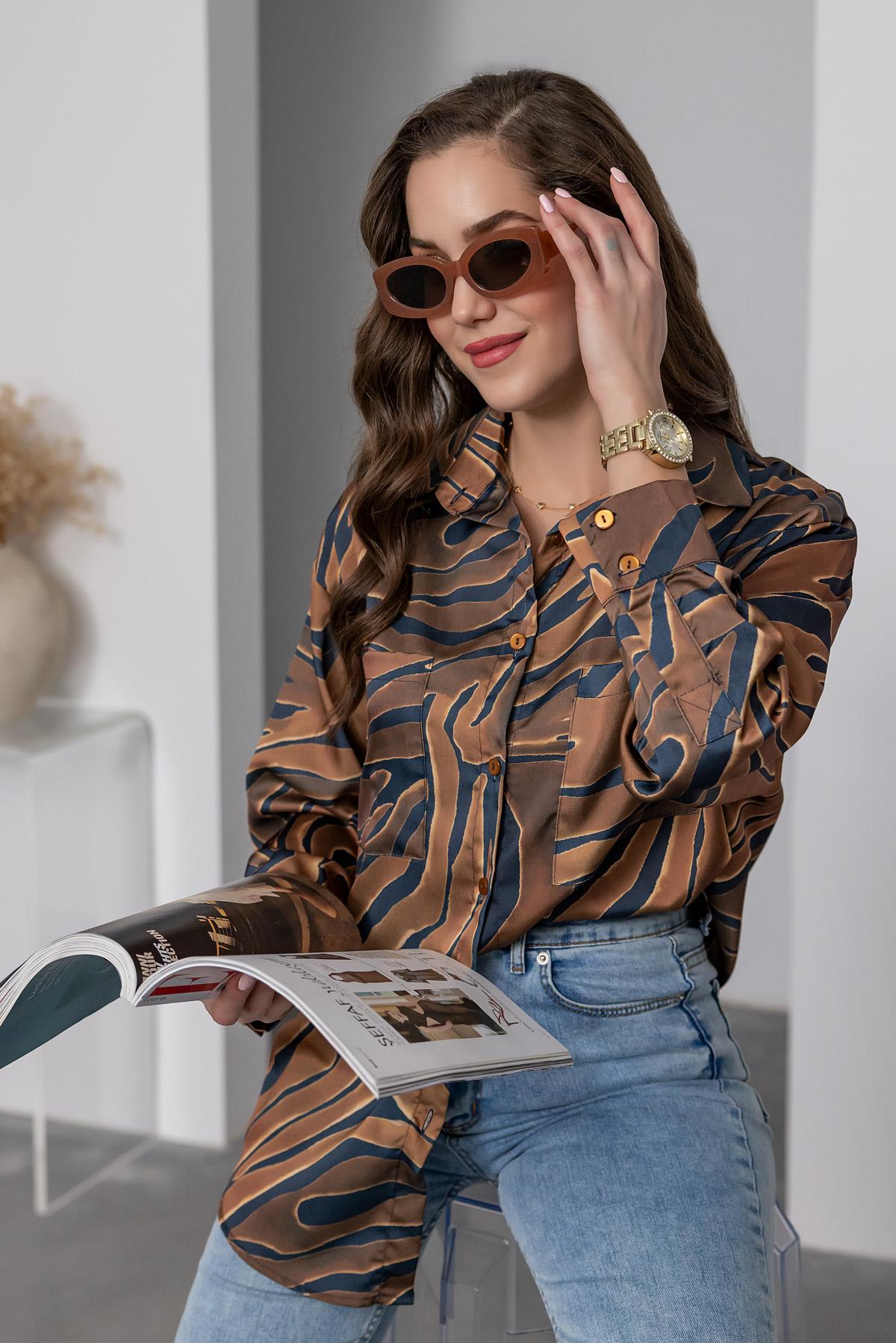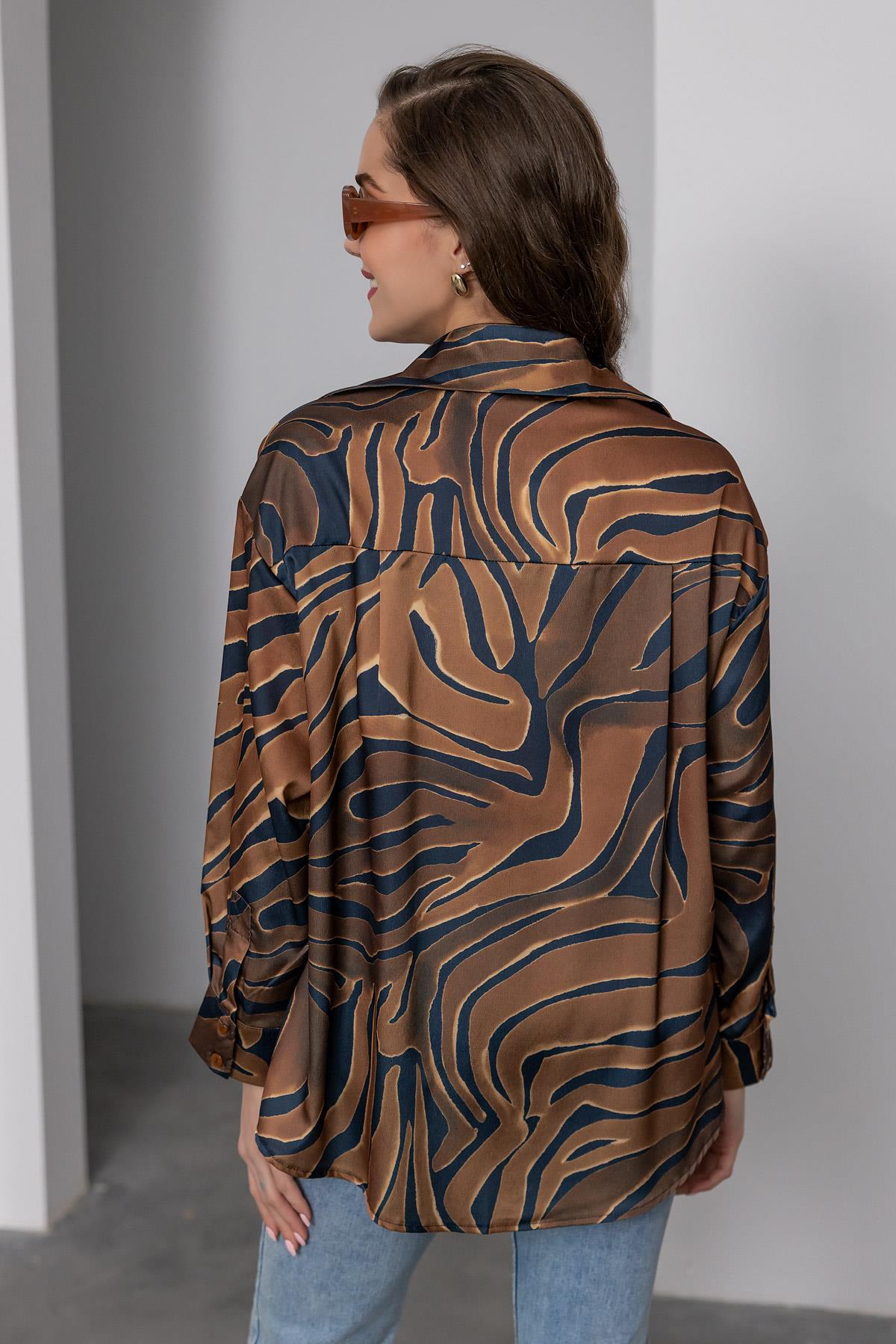 Zebra Desenli Saten Gömlek